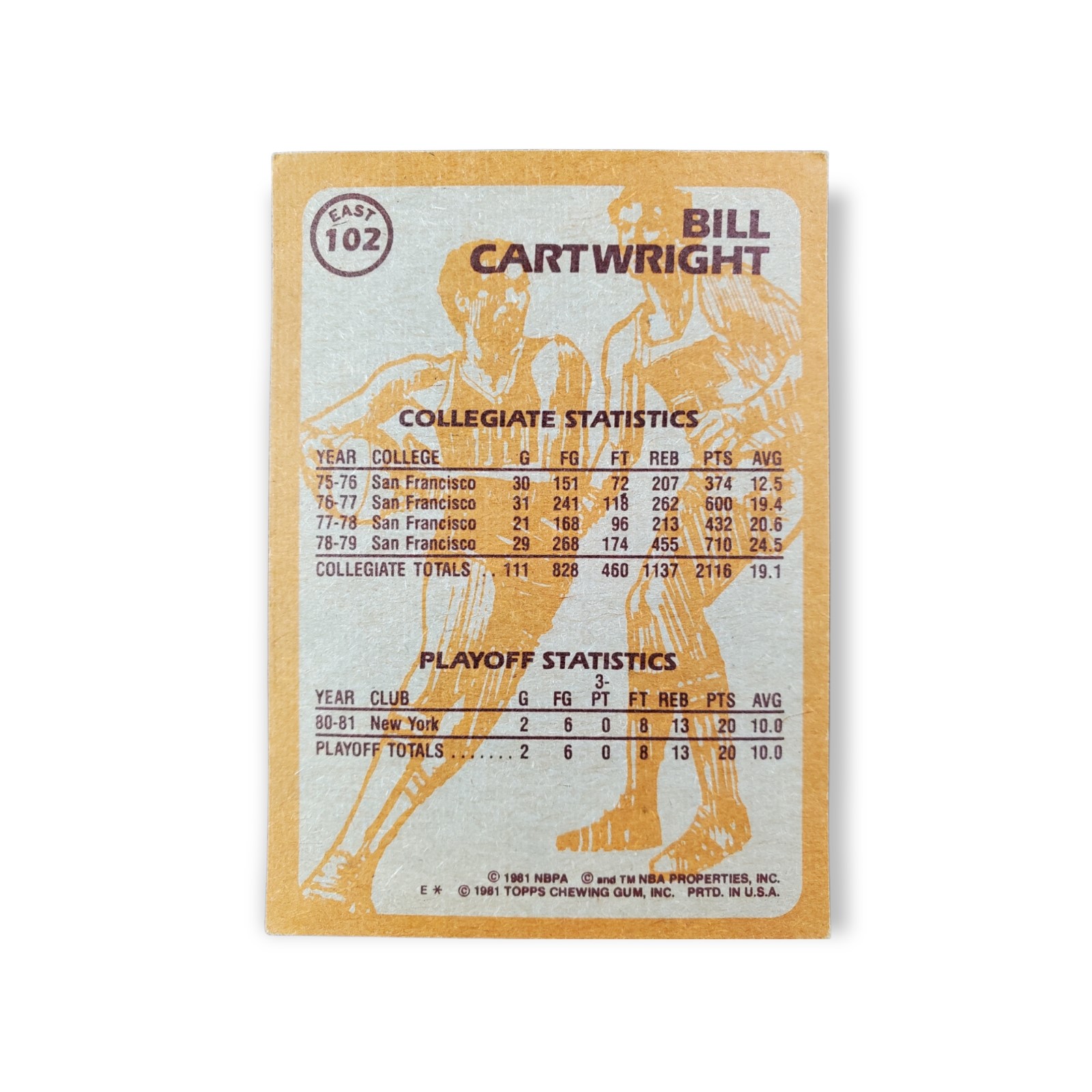 1981-82 Topps Basketball Bill Cartwright Card #102 Eastern Conference Super Action New York Knicks Trading Card
