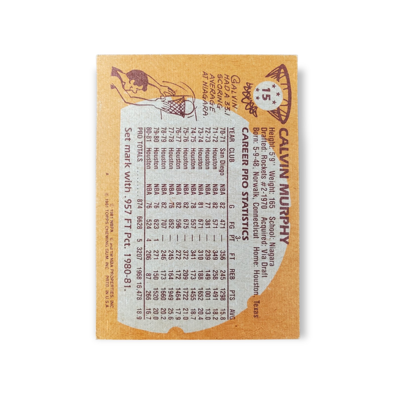 1981-82 Topps Basketball Calvin Murphy Card #15 Houston Rockets Trading Card