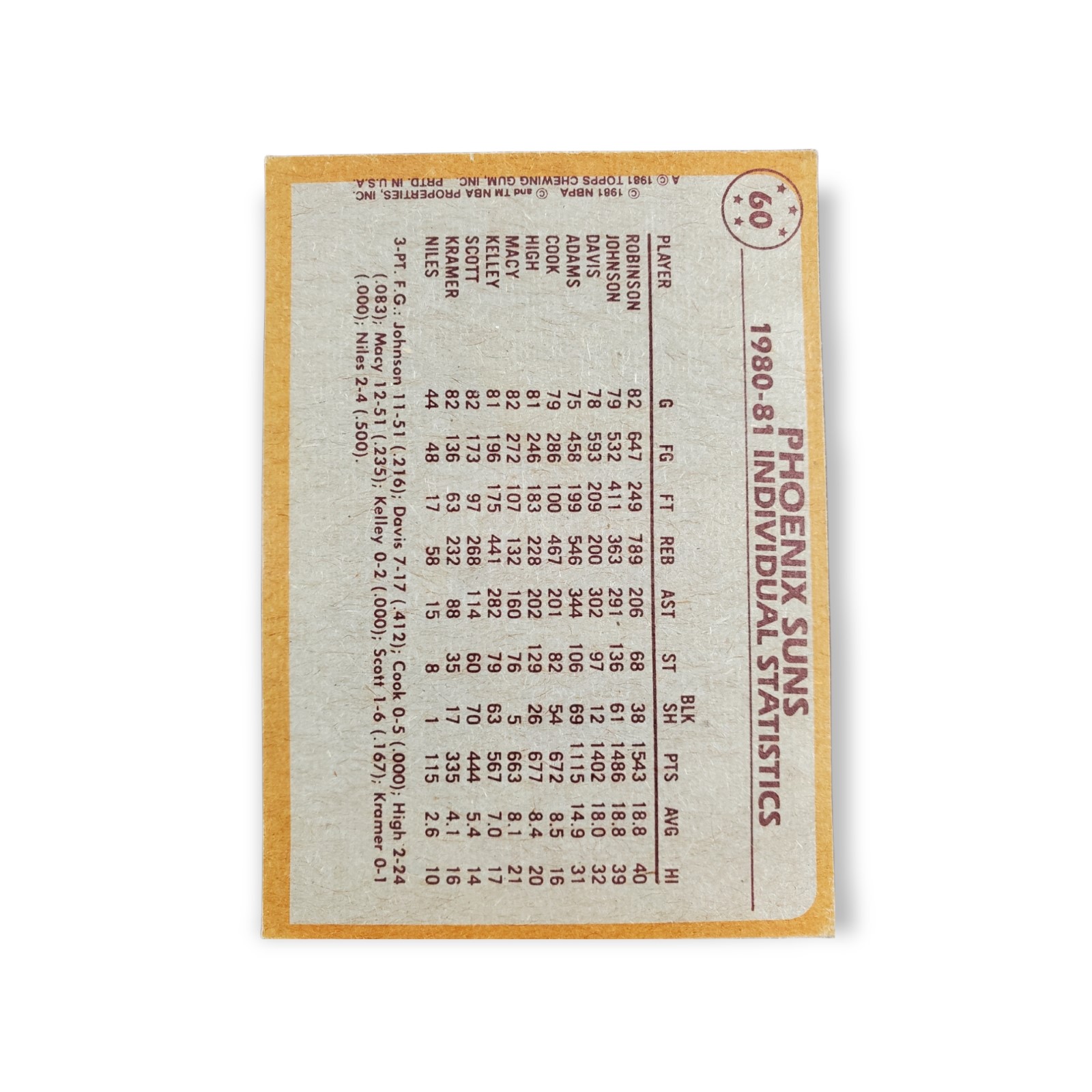 1981-82 Topps Basketball Card #60 Leonard Robinson / Alvan Adams Phoenix Suns Team Leader Trading Card