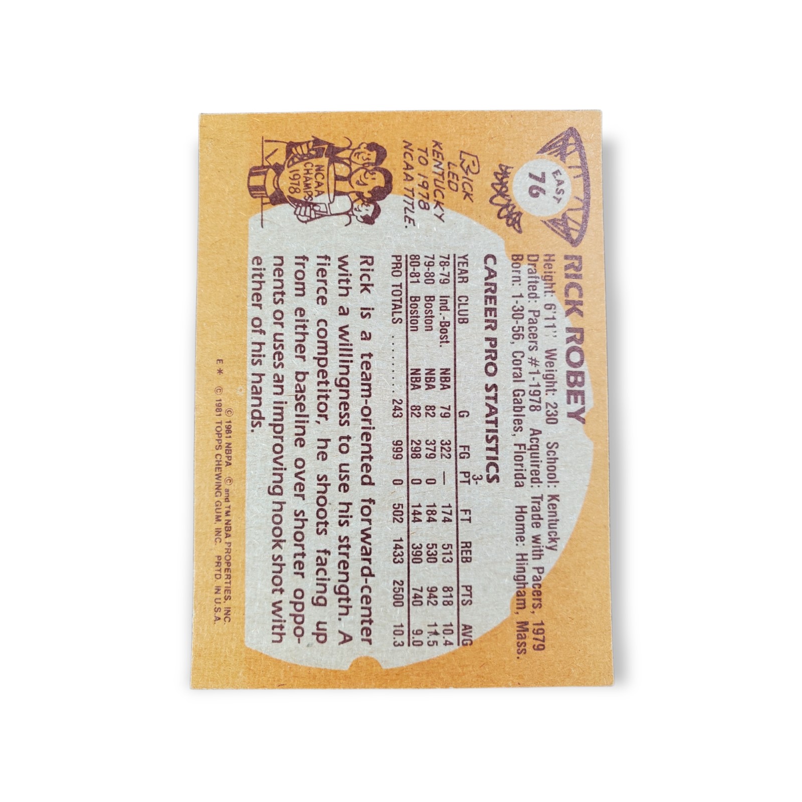 1981-82 Topps Basketball Rick Robey Card #76 Eastern Conference Boston Celtics Trading Card