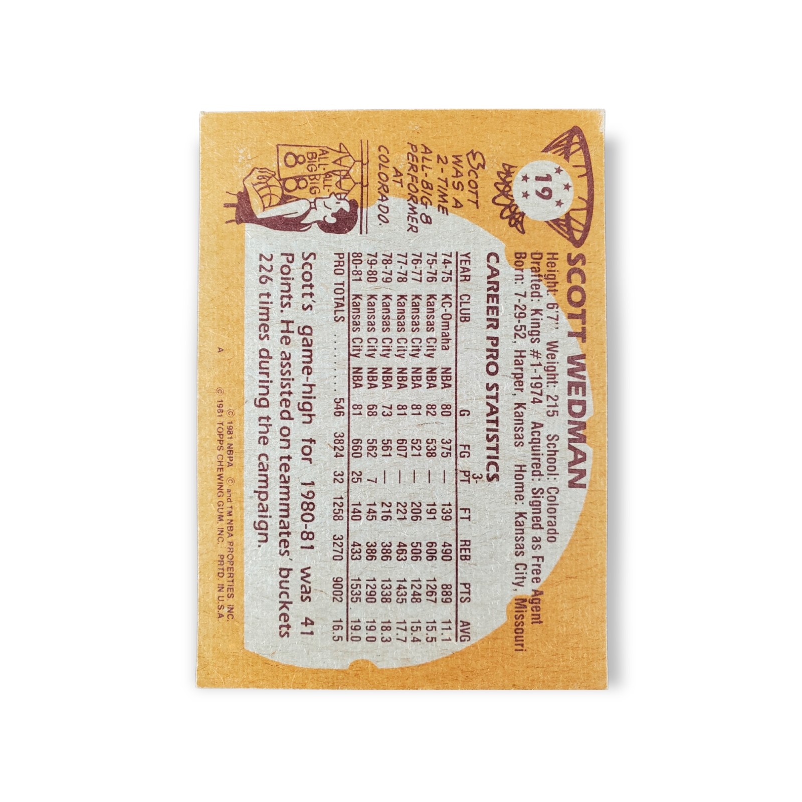 1981-82 Topps Basketball Scott Wedman Card #19 Cleveland Cavaliers Trading Card