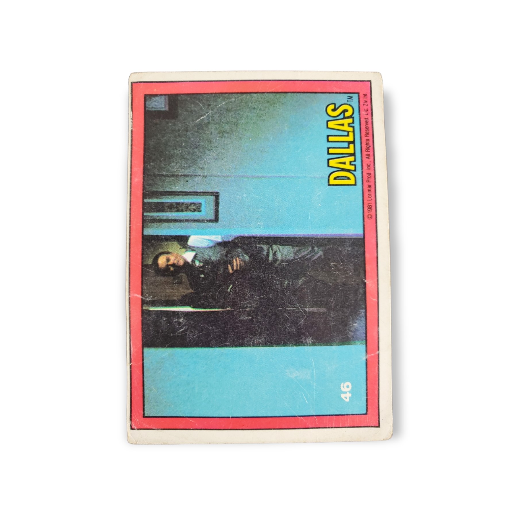 1981 Donruss Dallas Trading Card #46 Shot up! – Red Border Variation. The back of the card features a puzzle piece. The card does show significant signs of ware.