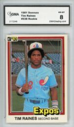 1981 Donruss Tim Raines First Edition Collector Series Rookie Montreal Expos Baseball Card #538 – GMA Professional Graded 8 NM-MT