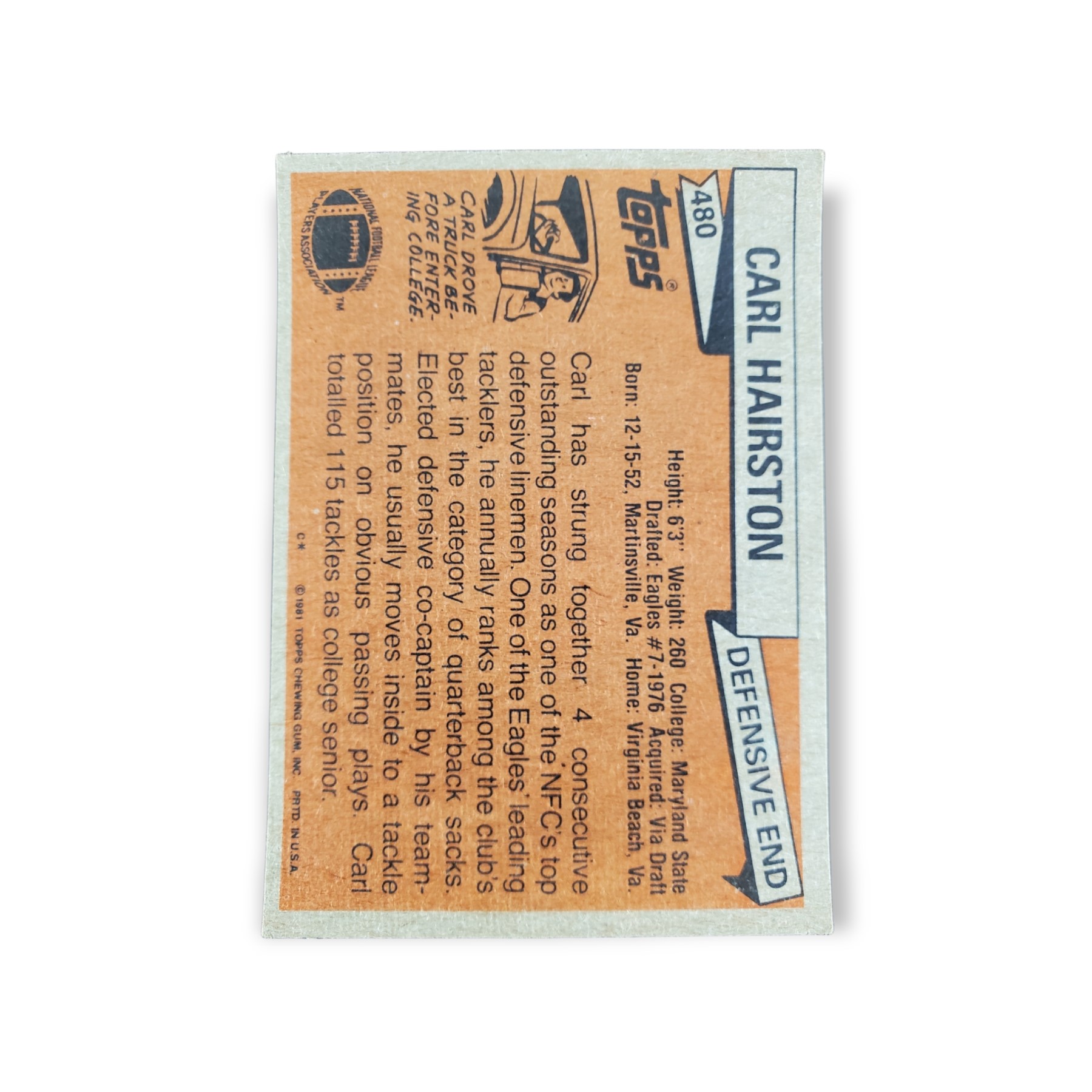 1981 Topps Football Carl Hairston Card #480 All-Pro Philadelphia Eagles Trading Card