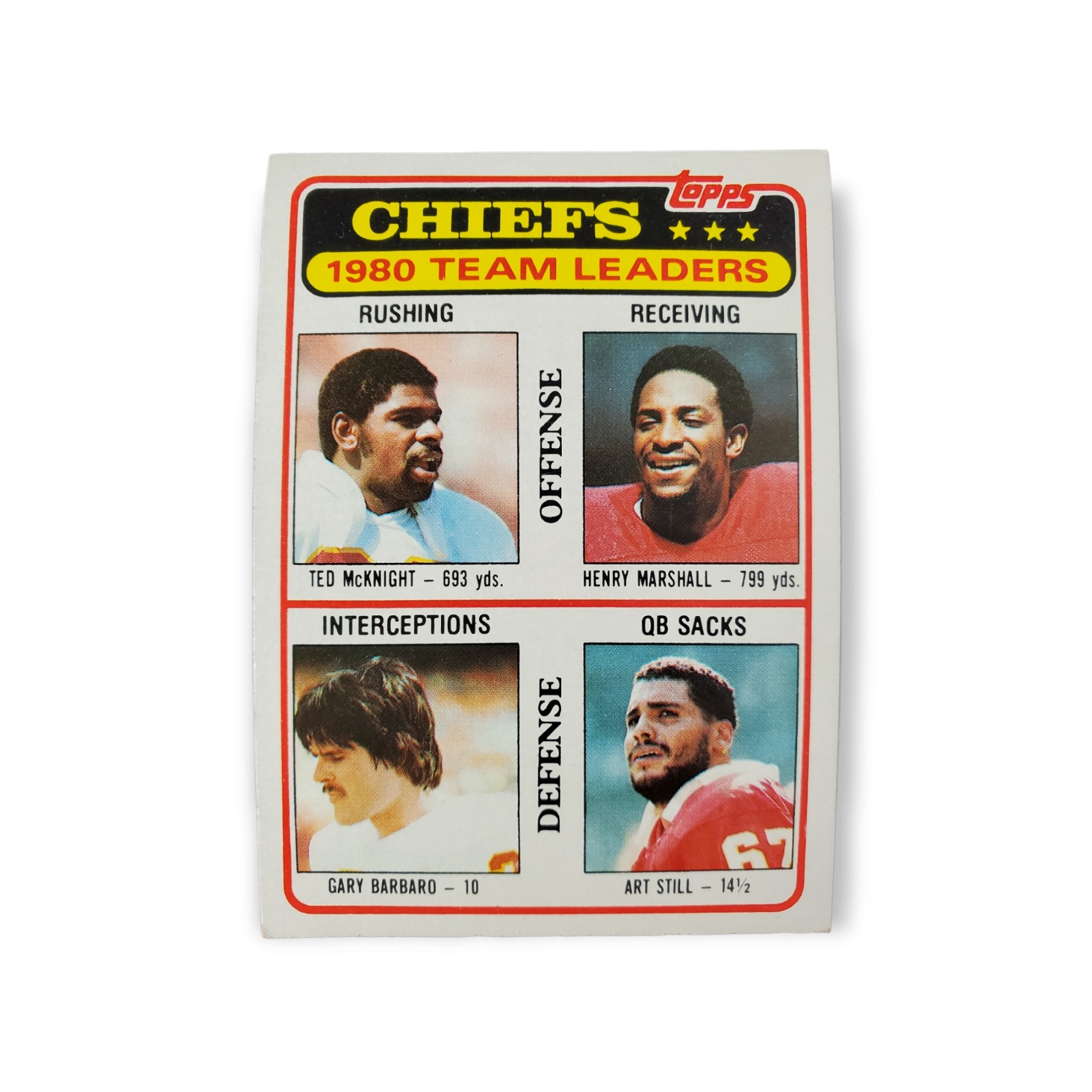 1981 Topps Football Ted McKnight / Henry Marshall / Gary Barbaro / Art Still Checklist Card #394 Team Leaders Kansas City Chiefs Trading Card