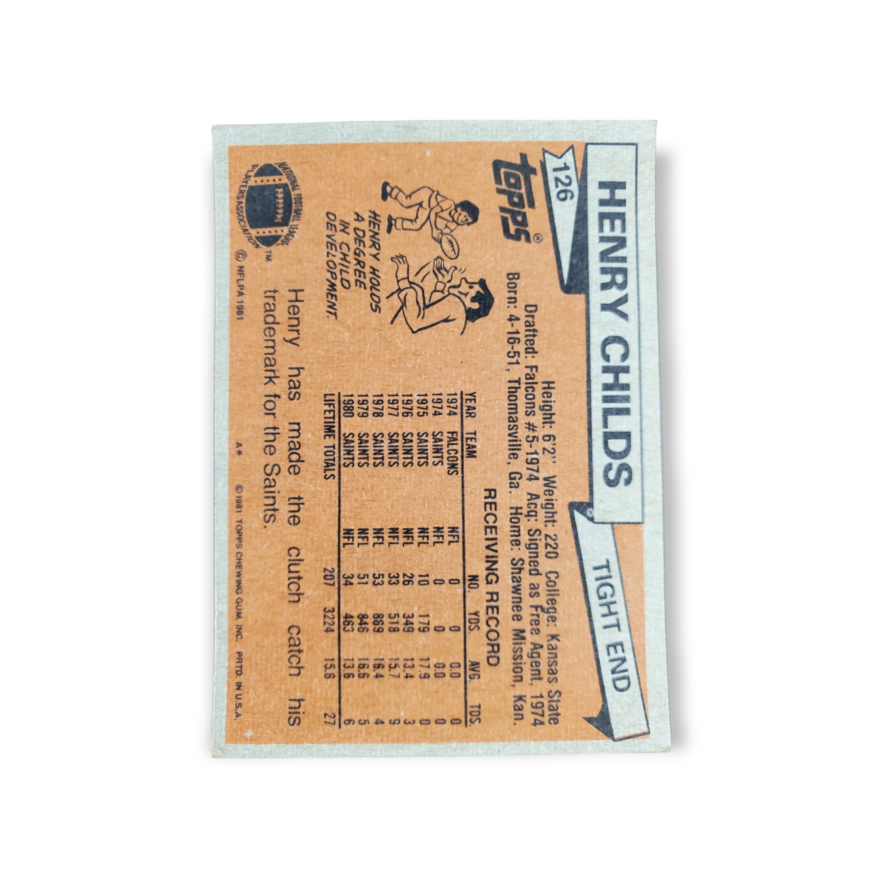 1981 Topps Football Henry Childs Card #126 New Orleans Saints Trading Card