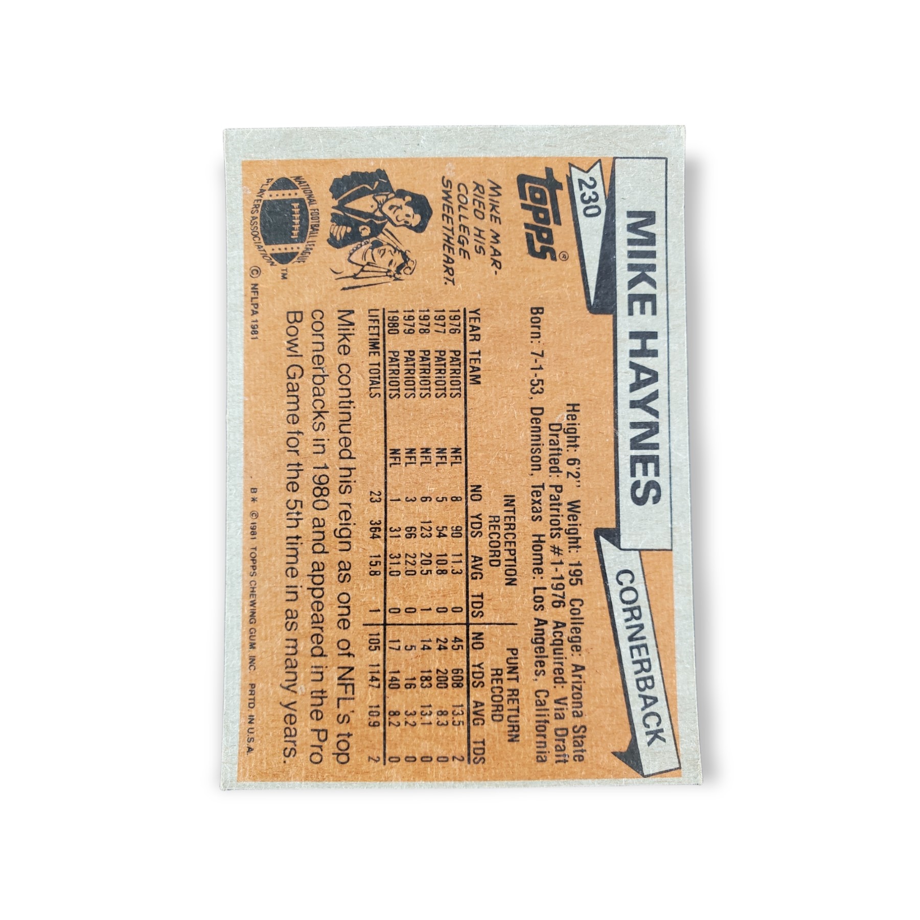 1981 Topps Football Mike Haynes Card #230 All-Pro New England Patriots Trading Card