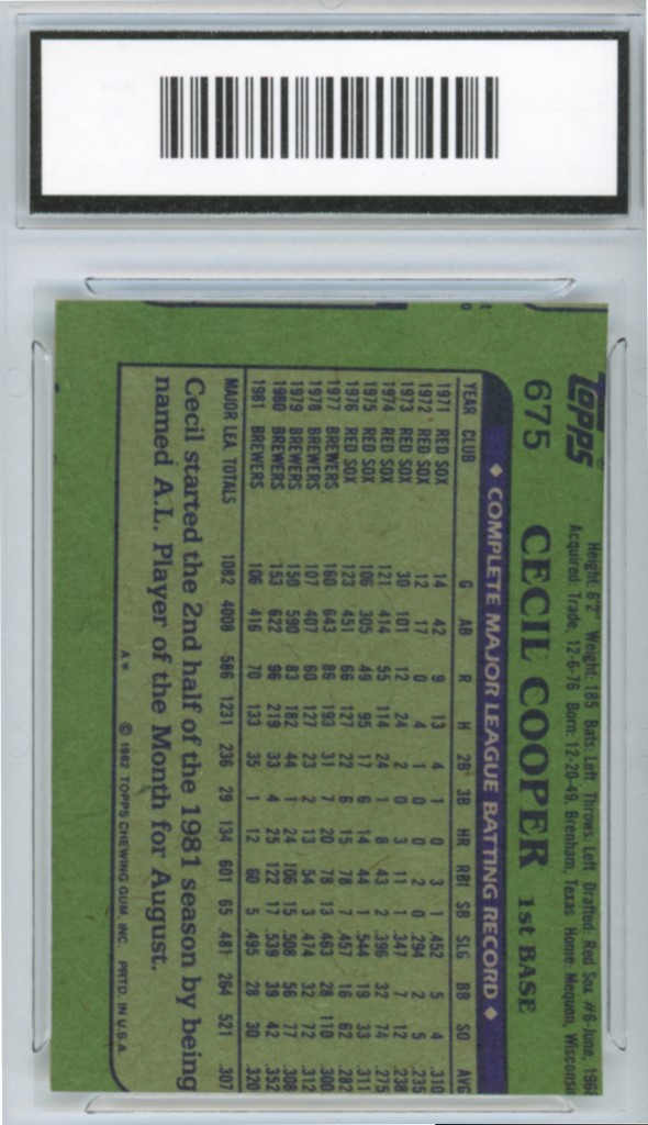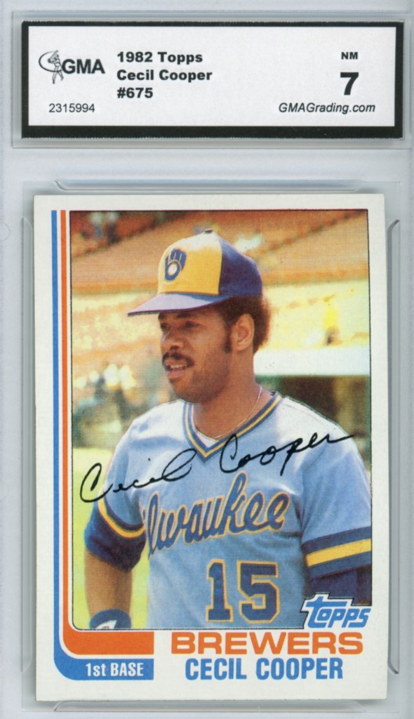 1982 Topps Cecil Cooper Milwaukee Brewers Baseball Card #675 – GMA Professional Graded 7 NM