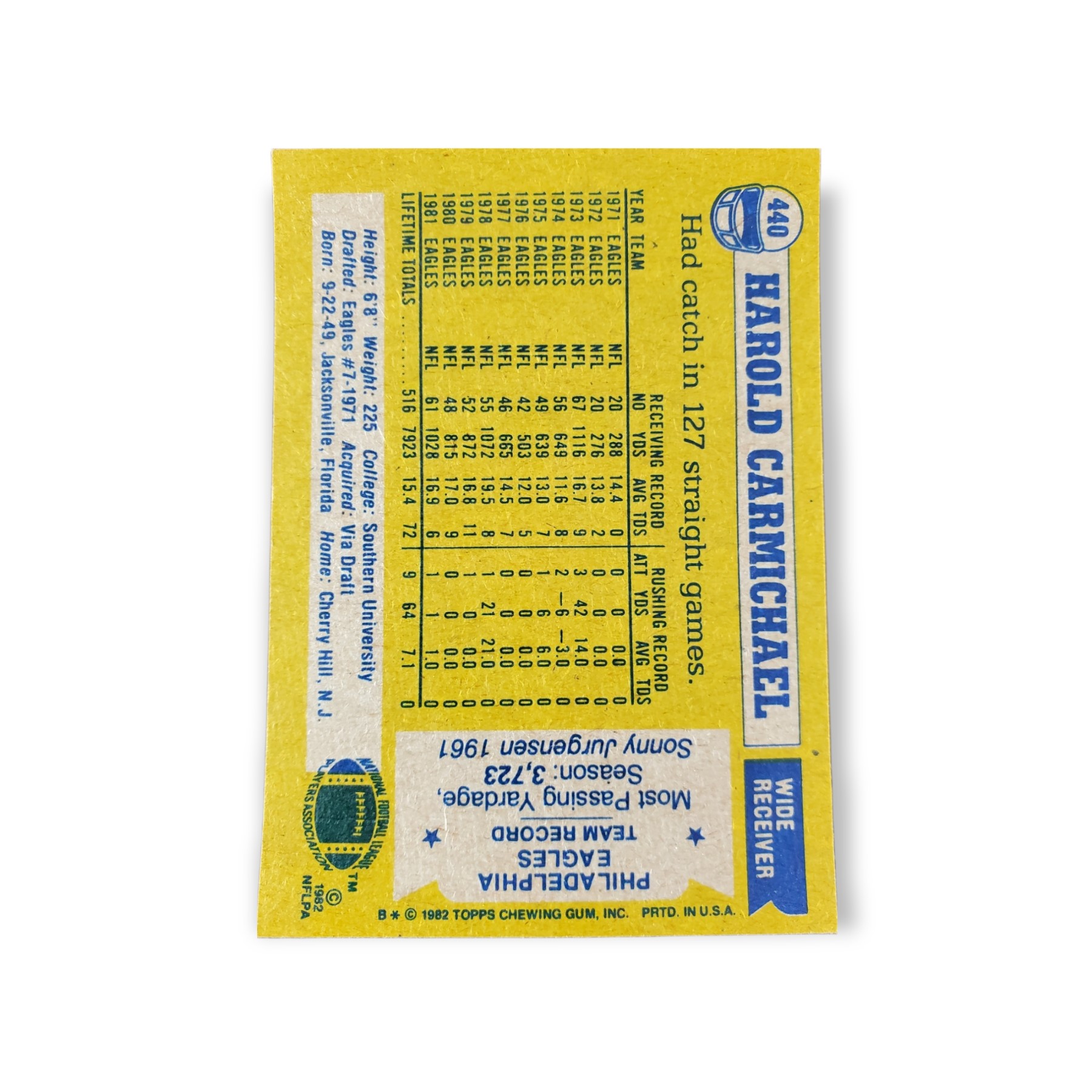 1982 Topps Football Harold Carmichael Card #440 Philadelphia Eagles Trading Card