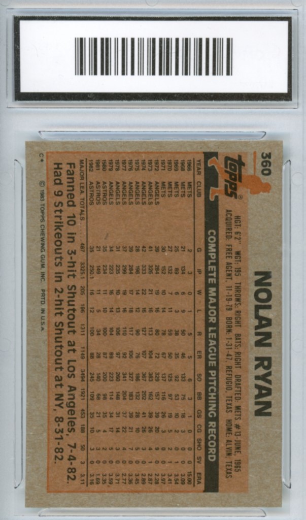 1983 Topps Nolan Ryan Houston Astros Baseball Card #360 – GMA Professional Graded 8.5 NM-MT+