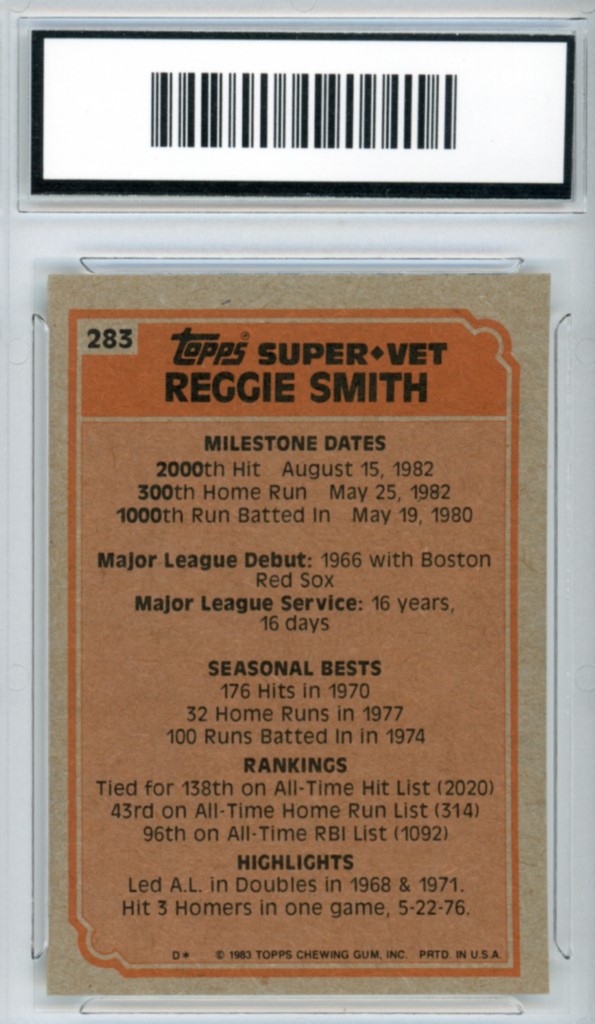 1983 Topps Reggie Smith Super Veteran San Francisco Giants Baseball Card #283 – GMA Professional Graded 8.5 NM-MT+