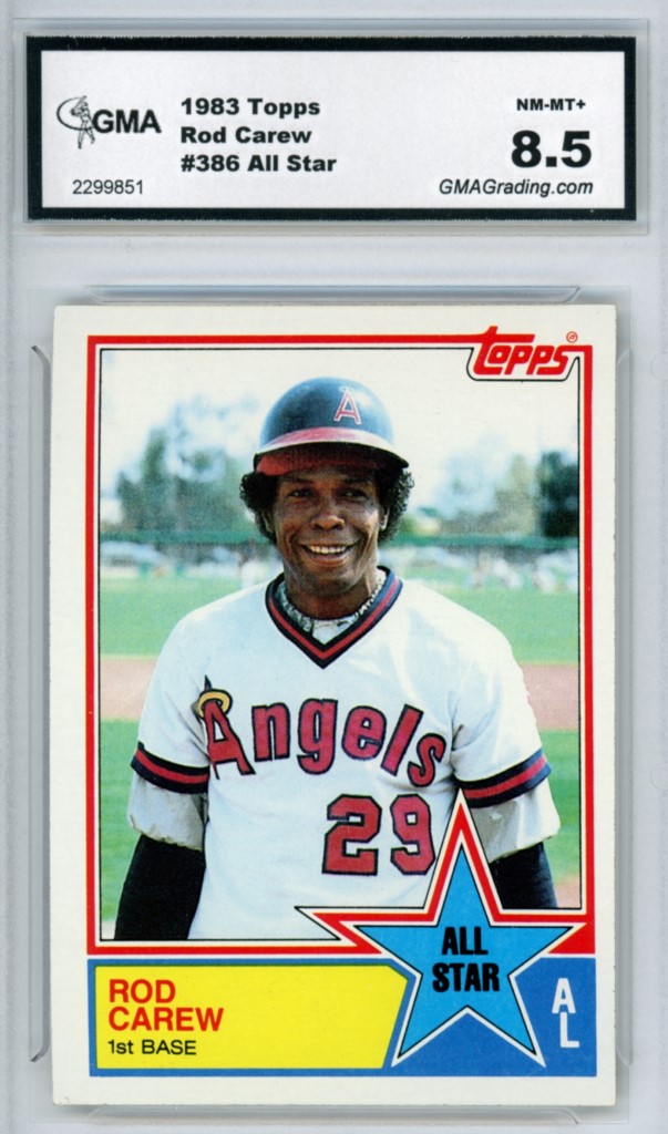 1983 Topps Rod Carew Great All-Star Games California Angels Baseball Card #386 – GMA Professional Graded 8.5 NM-MT+