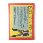 The 1983 Topps Star Wars: Return of the Jedi set has a total of 220 cards that consists of two series, series 1 with 132 cards and series 2 with 88 cards. The set highlights the third edition of the original Star Wars trilogy. Series 1 features an outer red border with a yellow and black outline surrounding the story scene and caption, while Series 2 is bordered in blue. The first card in Series 1 is a title card followed by 12 character cards and then #14-130 depicted clips from the film with the final two in the series being checklists. On the reverse of each numbered back in Series 1 is text explain the front of the card as well as a full-body drawing of one of the primary characters in the film. Series 2 examples show the spacecrafts, characters, action scenes and aliens with each back again featured the full-body drawing of a main character with trivia questions listed as a “Star Quiz.” If you are interested in starting your own set or adding to an existing one, visit our store to pick out whichever cards you need while they’re still available!
