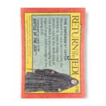 The 1983 Topps Star Wars: Return of the Jedi set has a total of 220 cards that consists of two series, series 1 with 132 cards and series 2 with 88 cards. The set highlights the third edition of the original Star Wars trilogy. Series 1 features an outer red border with a yellow and black outline surrounding the story scene and caption, while Series 2 is bordered in blue. The first card in Series 1 is a title card followed by 12 character cards and then #14-130 depicted clips from the film with the final two in the series being checklists. On the reverse of each numbered back in Series 1 is text explain the front of the card as well as a full-body drawing of one of the primary characters in the film. Series 2 examples show the spacecrafts, characters, action scenes and aliens with each back again featured the full-body drawing of a main character with trivia questions listed as a “Star Quiz.” If you are interested in starting your own set or adding to an existing one, visit our store to pick out whichever cards you need while they’re still available!
