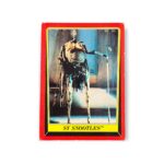 The 1983 Topps Star Wars: Return of the Jedi set has a total of 220 cards that consists of two series, series 1 with 132 cards and series 2 with 88 cards. The set highlights the third edition of the original Star Wars trilogy. Series 1 features an outer red border with a yellow and black outline surrounding the story scene and caption, while Series 2 is bordered in blue. The first card in Series 1 is a title card followed by 12 character cards and then #14-130 depicted clips from the film with the final two in the series being checklists. On the reverse of each numbered back in Series 1 is text explain the front of the card as well as a full-body drawing of one of the primary characters in the film. Series 2 examples show the spacecrafts, characters, action scenes and aliens with each back again featured the full-body drawing of a main character with trivia questions listed as a “Star Quiz.” If you are interested in starting your own set or adding to an existing one, visit our store to pick out whichever cards you need while they’re still available!
