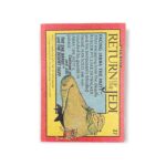The 1983 Topps Star Wars: Return of the Jedi set has a total of 220 cards that consists of two series, series 1 with 132 cards and series 2 with 88 cards. The set highlights the third edition of the original Star Wars trilogy. Series 1 features an outer red border with a yellow and black outline surrounding the story scene and caption, while Series 2 is bordered in blue. The first card in Series 1 is a title card followed by 12 character cards and then #14-130 depicted clips from the film with the final two in the series being checklists. On the reverse of each numbered back in Series 1 is text explain the front of the card as well as a full-body drawing of one of the primary characters in the film. Series 2 examples show the spacecrafts, characters, action scenes and aliens with each back again featured the full-body drawing of a main character with trivia questions listed as a “Star Quiz.” If you are interested in starting your own set or adding to an existing one, visit our store to pick out whichever cards you need while they’re still available!
