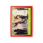 The 1983 Topps Star Wars: Return of the Jedi set has a total of 220 cards that consists of two series, series 1 with 132 cards and series 2 with 88 cards. The set highlights the third edition of the original Star Wars trilogy. Series 1 features an outer red border with a yellow and black outline surrounding the story scene and caption, while Series 2 is bordered in blue. The first card in Series 1 is a title card followed by 12 character cards and then #14-130 depicted clips from the film with the final two in the series being checklists. On the reverse of each numbered back in Series 1 is text explain the front of the card as well as a full-body drawing of one of the primary characters in the film. Series 2 examples show the spacecrafts, characters, action scenes and aliens with each back again featured the full-body drawing of a main character with trivia questions listed as a “Star Quiz.” If you are interested in starting your own set or adding to an existing one, visit our store to pick out whichever cards you need while they’re still available!