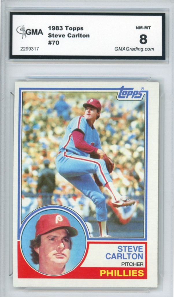 1983 Topps Steve Carlton Philadelphia Phillies Baseball Card #70 – GMA Professional Graded 8 NM-MT