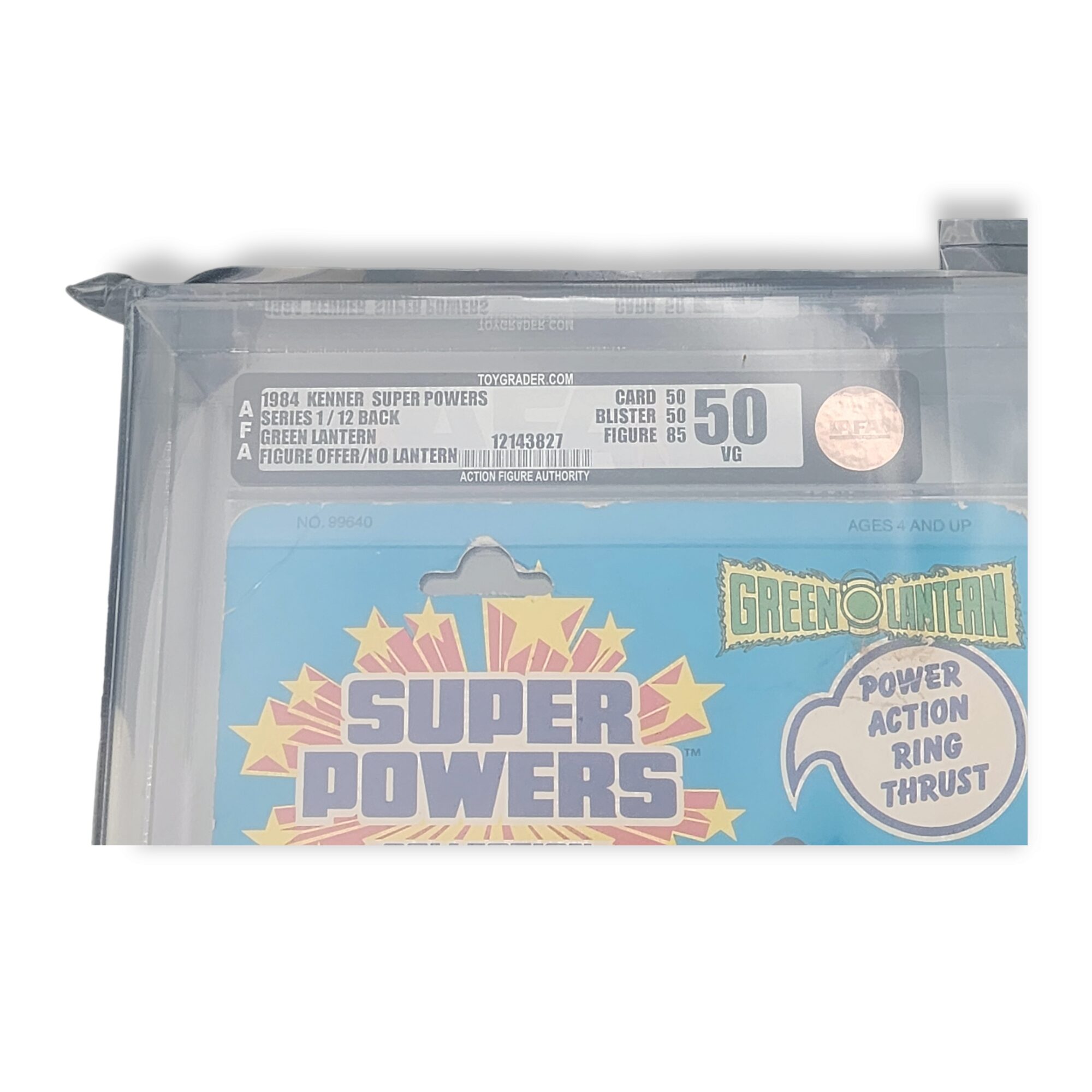 Vintage 1984 Kenner DC Comics Super Powers Collection Green Lantern AFA Graded 50 VG NO LANTERN ERROR with Steppenwolf Offer Action Figure & Comic Book Included. This is a one of a kind error where the lantern accessory was not included with the figure. In all our research we have not yet found another example of one that is factory sealed with the missing lantern, plus ours has already been authenticated.