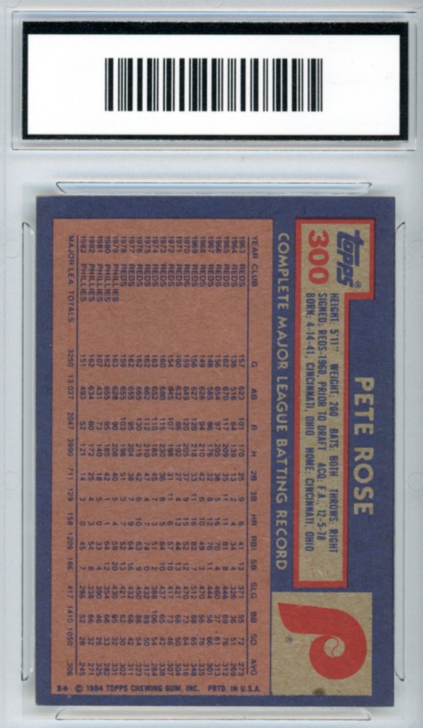 1984 Topps Pete Rose Philadelphia Phillies Baseball Card #300 – GMA Professional Graded 8 NM-MT