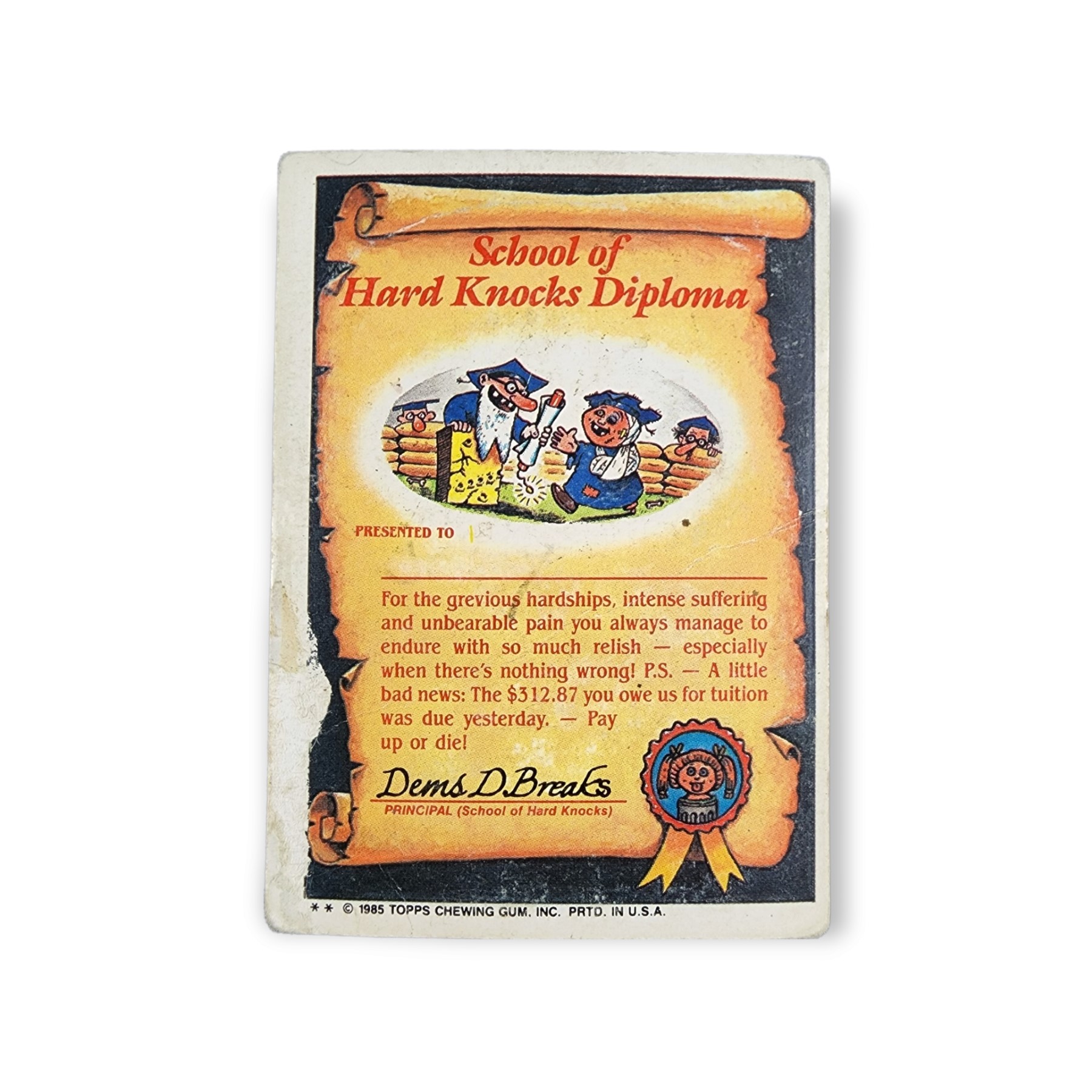 1985 Topps Garbage Pail Kids Series 2 Trading Card #49b Schizo Fran Original Card Variation – This card is in heavily handled condition.
