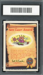 The 1985 Topps Garbage Pail Kids Original Series 2 set has a total of 84 cards that make up a numerical set. The cards are numbered 42a-83a and 42b-83b. There were a total of three print runs for the United states Garbage Pail Kids Original Series 2. It takes a total of 131 cards to make a complete variation set. Each card measures approximately 3.5″ x 2.5″ x 1/32″ and doubles as a sticker which can be peeled off by the front of the card. The front of the card depicts one of the sets wild characters while the back of the card is reserved for a either a diploma, license, award or a puzzle piece. If you are interested in starting your own set or adding to an existing one, visit our store to pick out whichever cards you need while they’re still available!