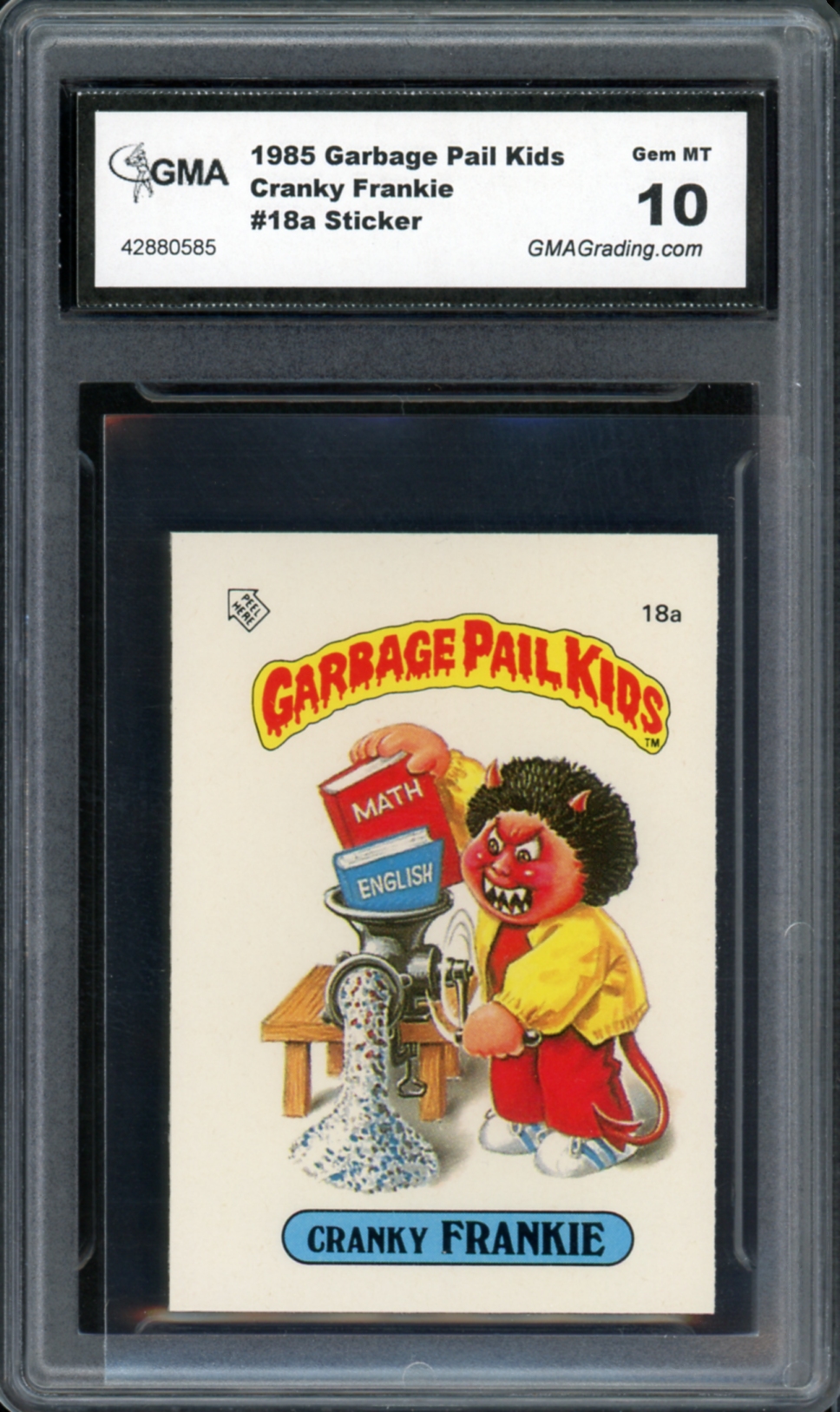 1985 Topps Garbage Pail Kids UK Series 1 #18a Cranky Frankie Sticker GMA Graded 10 Gem Mint Non-Sport Trading Card