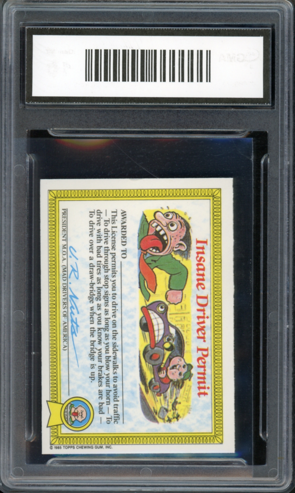1985 Topps Garbage Pail Kids UK Series 1 #18a Cranky Frankie Sticker GMA Graded 10 Gem Mint Non-Sport Trading Card