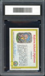 The 1985 Topps Garbage Pail Kids UK Original Series 1 set has a total of 82 cards that make up a numerical set. The cards are numbered 1a-41a and 1b-41b. There are an additional 6 variation cards for the card numbers that have both a checklist back and an award back. It takes a total of 88 cards to make a complete variation set. Each card measures approximately 3″ x 2 1/10″ x 1/32″ and doubles as a sticker which can be peeled off by the front of the card. The front of the card depicts one of the sets wild characters while the back of the card is reserved for a either a diploma, license or award. If you are interested in starting your own set or adding to an existing one, visit our store to pick out whichever cards you need while they’re still available!