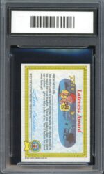 The 1985 Topps Garbage Pail Kids UK Original Series 1 set has a total of 82 cards that make up a numerical set. The cards are numbered 1a-41a and 1b-41b. There are an additional 6 variation cards for the card numbers that have both a checklist back and an award back. It takes a total of 88 cards to make a complete variation set. Each card measures approximately 3″ x 2 1/10″ x 1/32″ and doubles as a sticker which can be peeled off by the front of the card. The front of the card depicts one of the sets wild characters while the back of the card is reserved for a either a diploma, license or award. If you are interested in starting your own set or adding to an existing one, visit our store to pick out whichever cards you need while they’re still available!