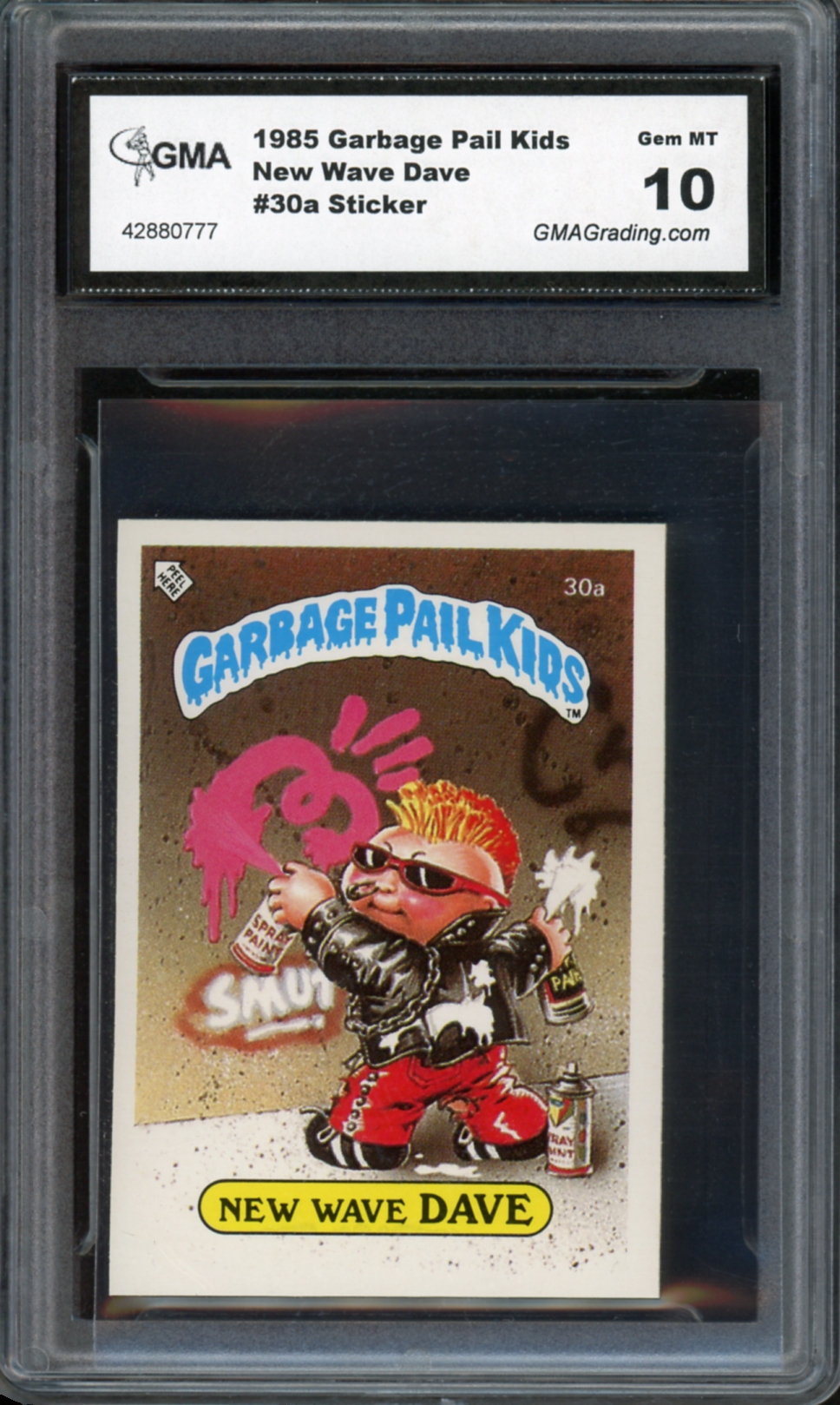 1985 Topps Garbage Pail Kids UK Series 1 #30a New Wave Dave Sticker GMA Graded 10 Gem Mint Non-Sport Trading Card