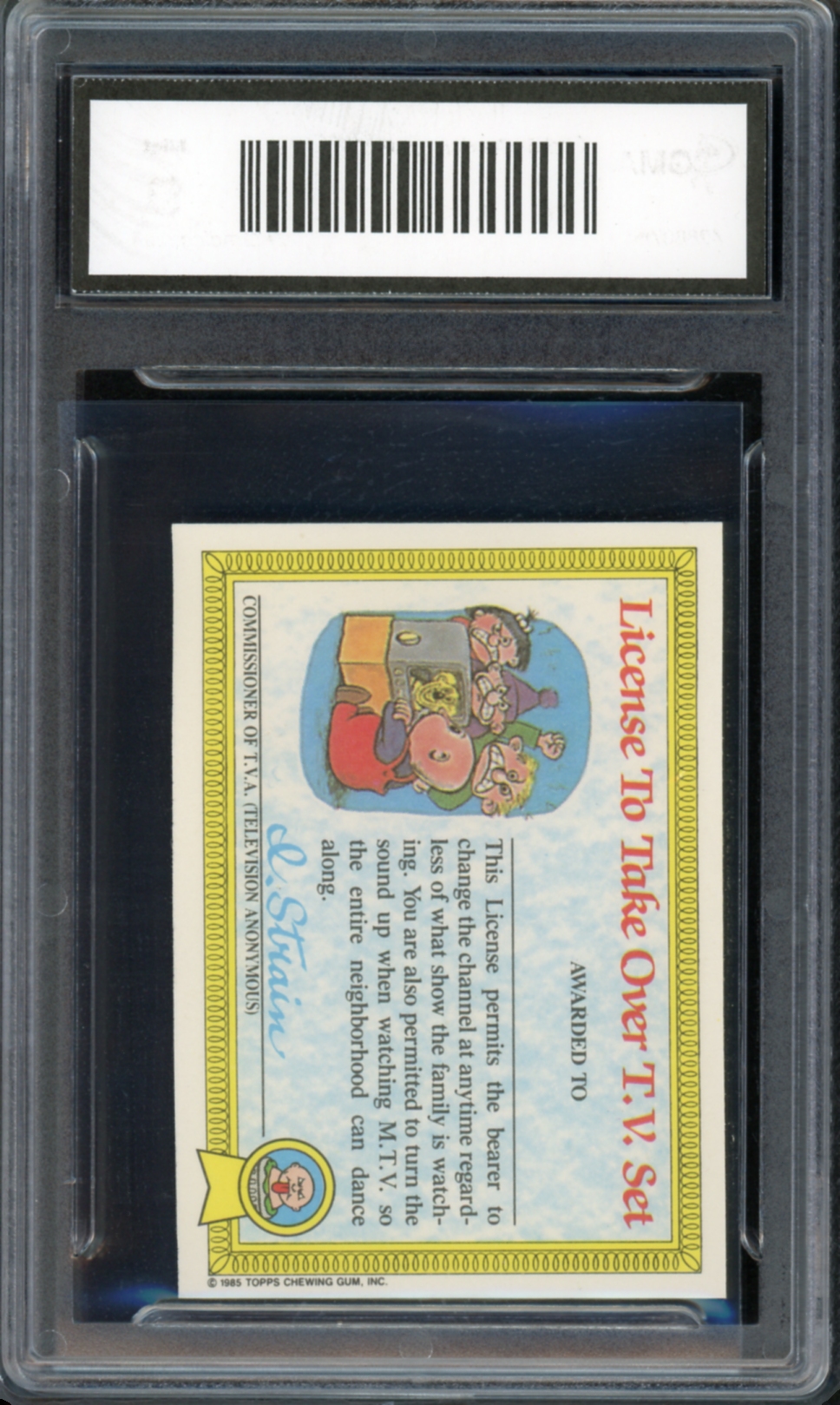 The 1985 Topps Garbage Pail Kids UK Original Series 1 set has a total of 82 cards that make up a numerical set. The cards are numbered 1a-41a and 1b-41b. There are an additional 6 variation cards for the card numbers that have both a checklist back and an award back. It takes a total of 88 cards to make a complete variation set. Each card measures approximately 3″ x 2 1/10″ x 1/32″ and doubles as a sticker which can be peeled off by the front of the card. The front of the card depicts one of the sets wild characters while the back of the card is reserved for a either a diploma, license or award. If you are interested in starting your own set or adding to an existing one, visit our store to pick out whichever cards you need while they’re still available!
