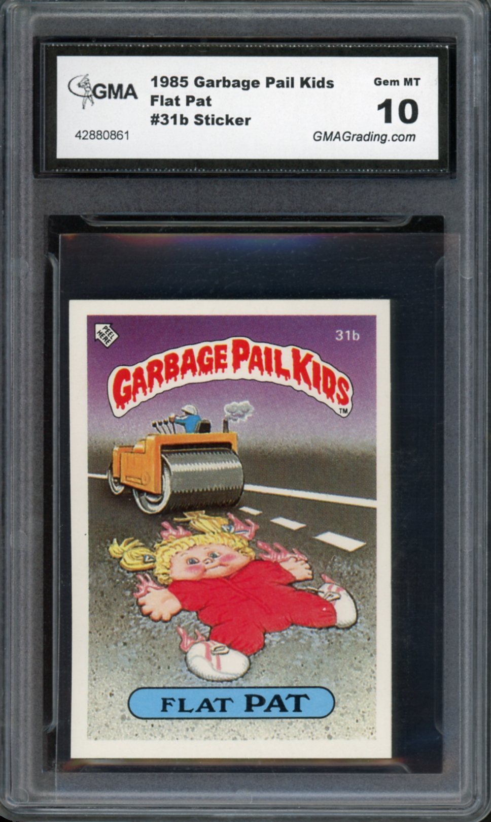 1985 Topps Garbage Pail Kids UK Series 1 #31b Flat Pat Sticker GMA Graded 10 Gem Mint Non-Sport Trading Card