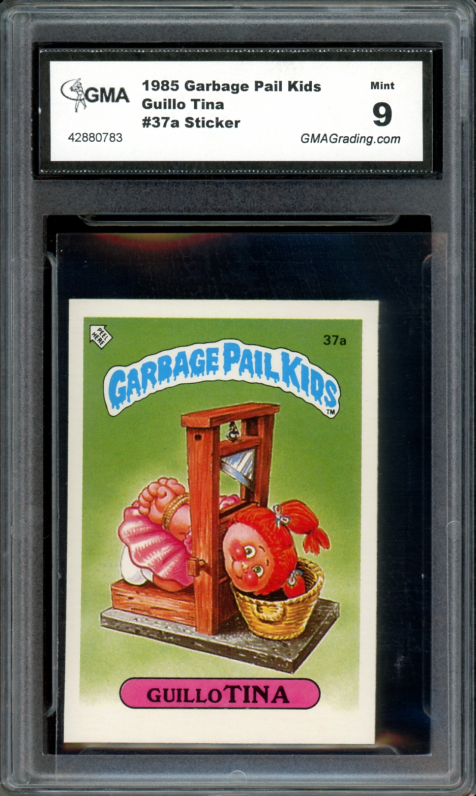 1985 Topps Garbage Pail Kids UK Series 1 #37a Guillo Tina Sticker GMA Graded 9 Mint Non-Sport Trading Card