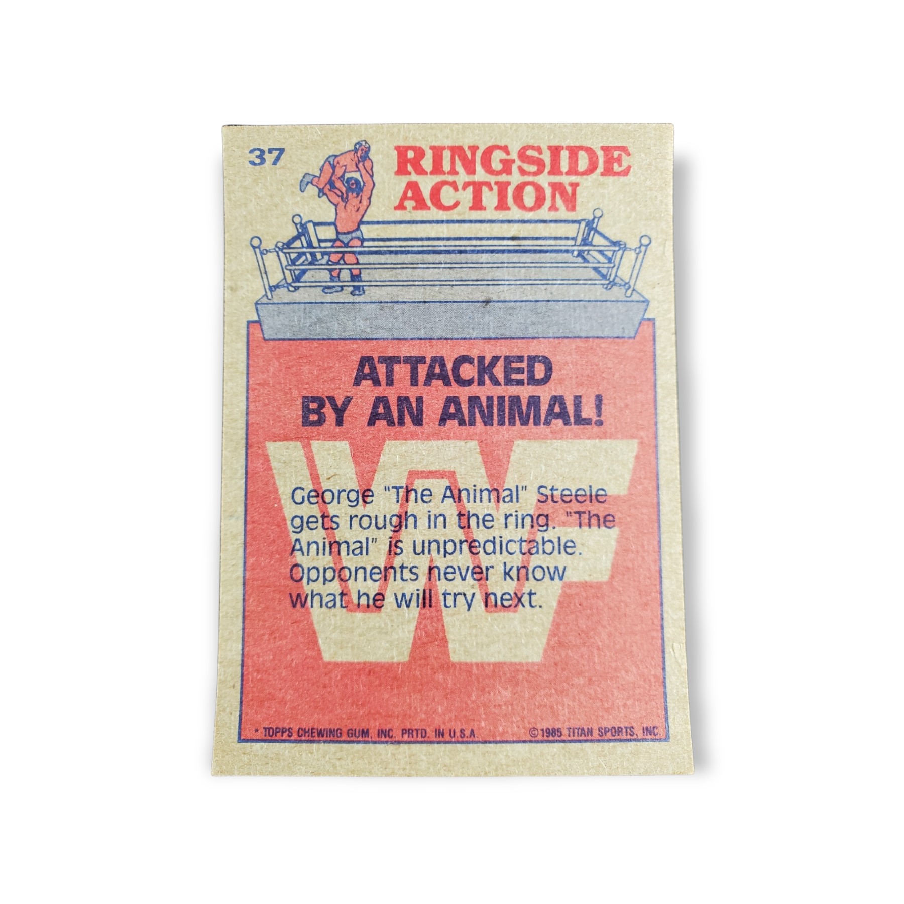 1985 Topps WWF Pro Wrestling Stars Trading Card #37 Ringside Action Attacked By An Animal!