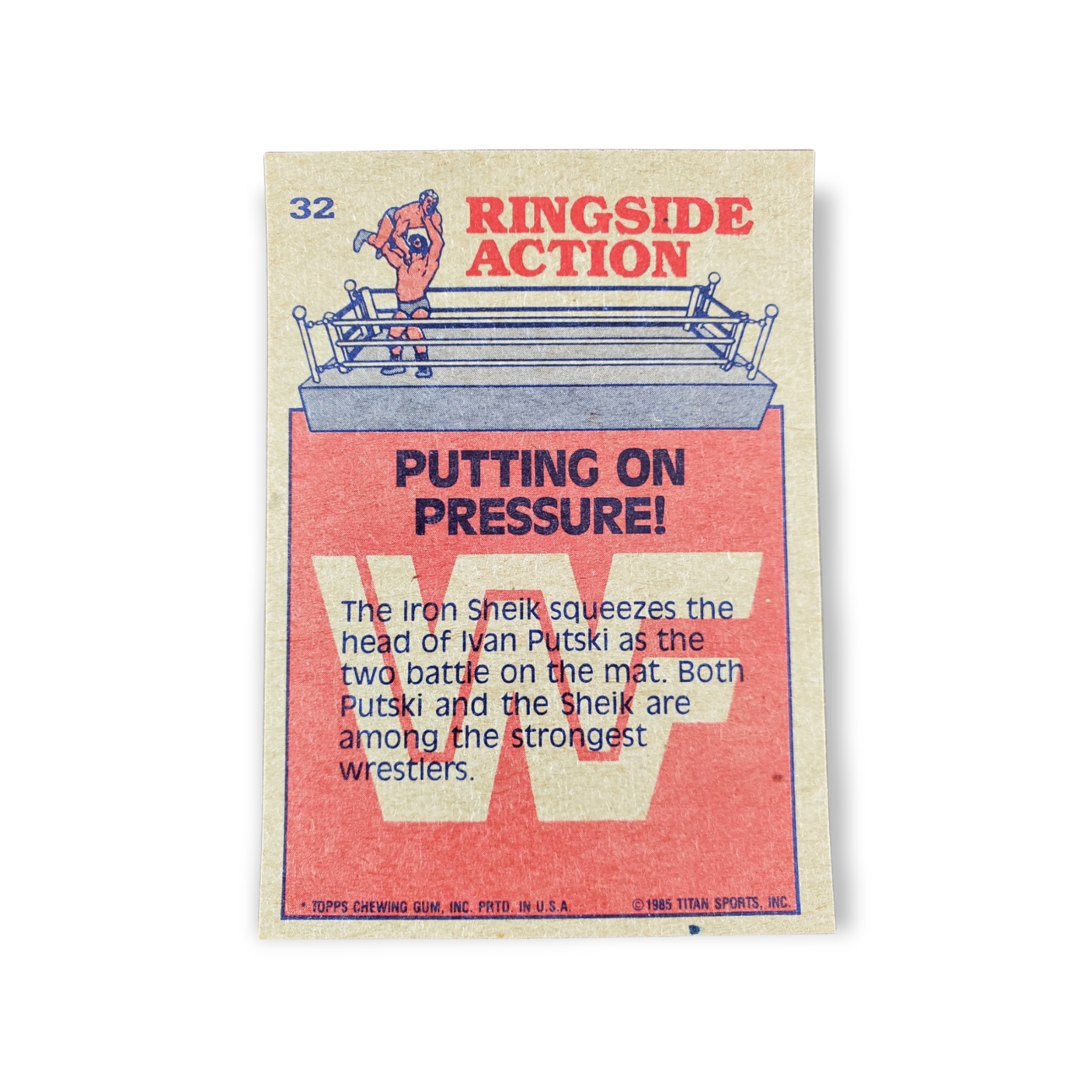 1985 Topps WWF Pro Wrestling Stars Trading Card #32 Ringside Action Putting On Pressure!