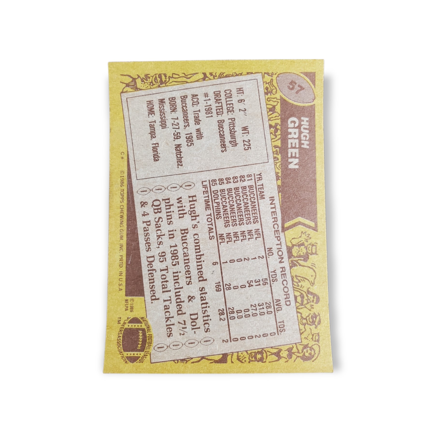 1986 Topps Football Hugh Green Card #57 Miami Dolphins Trading Card
