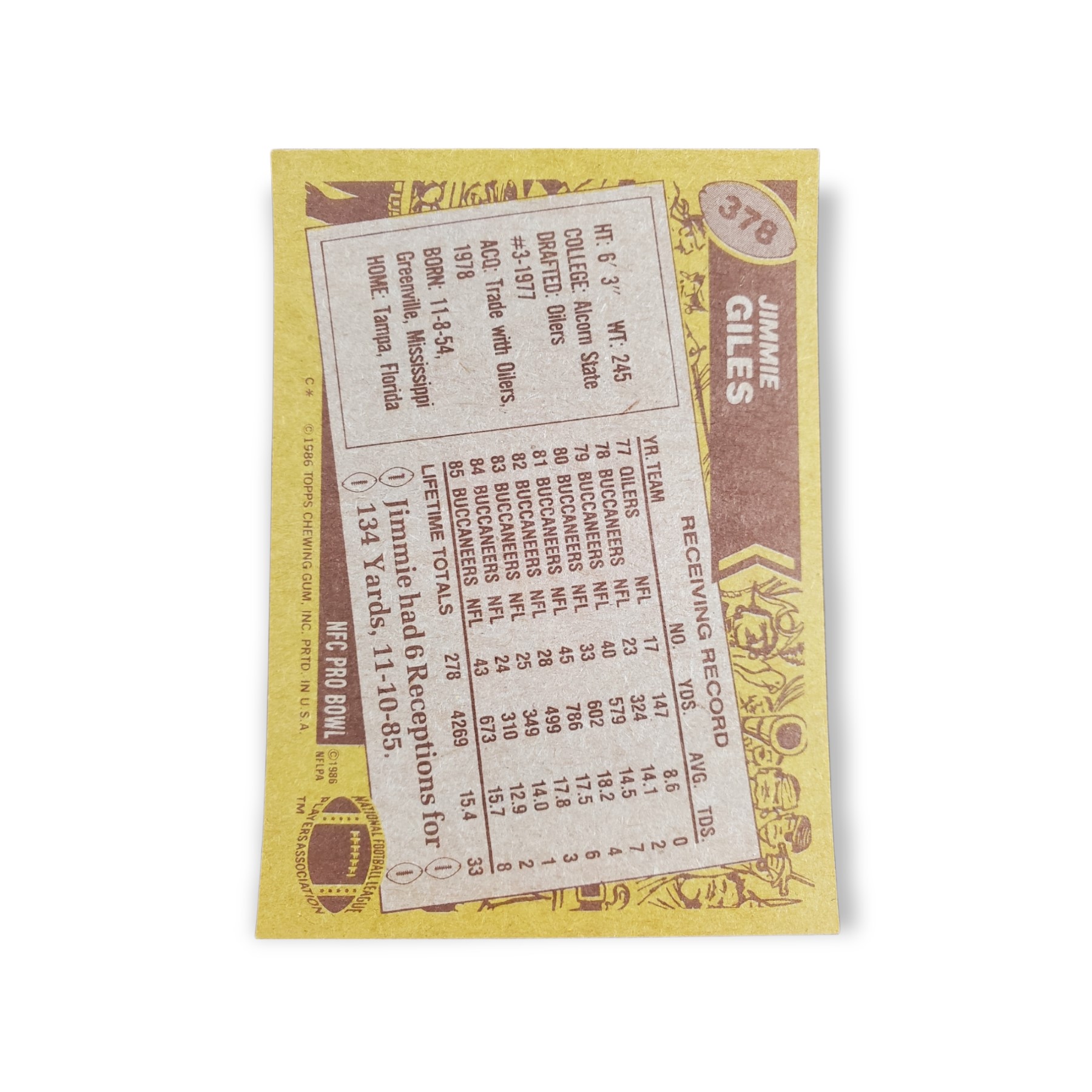 1986 Topps Football Jimmie Giles Card #378 Tampa Bay Buccaneers Trading Card