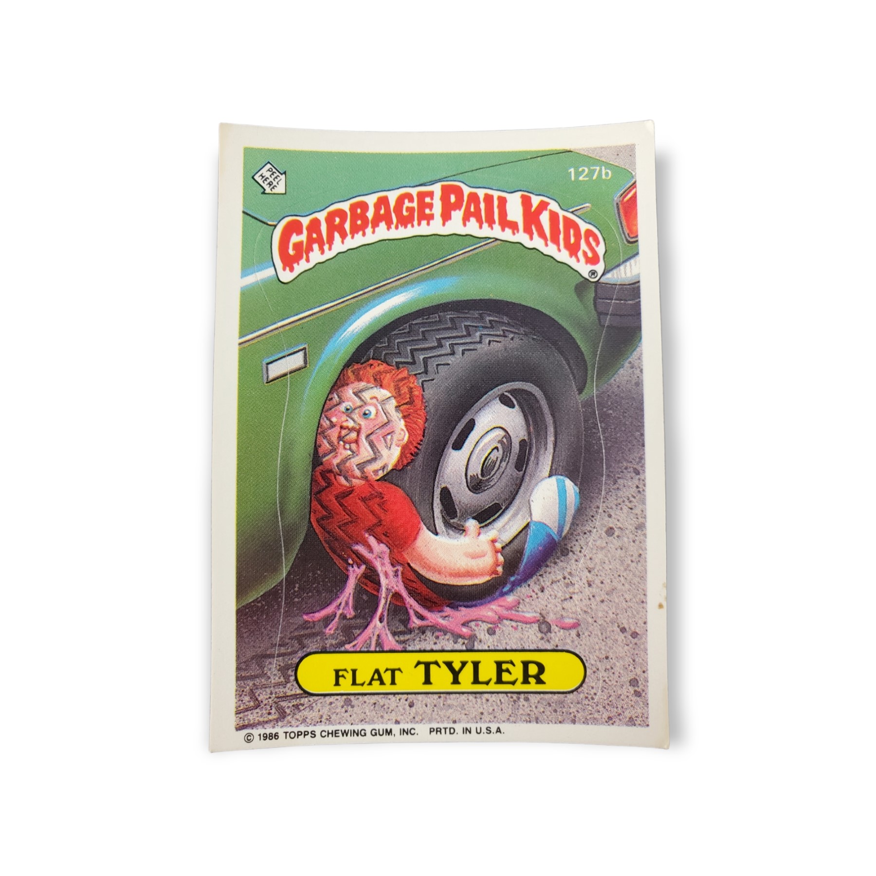 1986 Topps Garbage Pail Kids Original Series 4 Trading Card #127b Flat Tyler Sticker – The cards condition should be considered moderately to heavily used or handled. The card may have any of the following: minor creases, stains, scratches, rounded corners, off centering, a miscut, misprint, or otherwise noted imperfection so please carefully review all available images.
