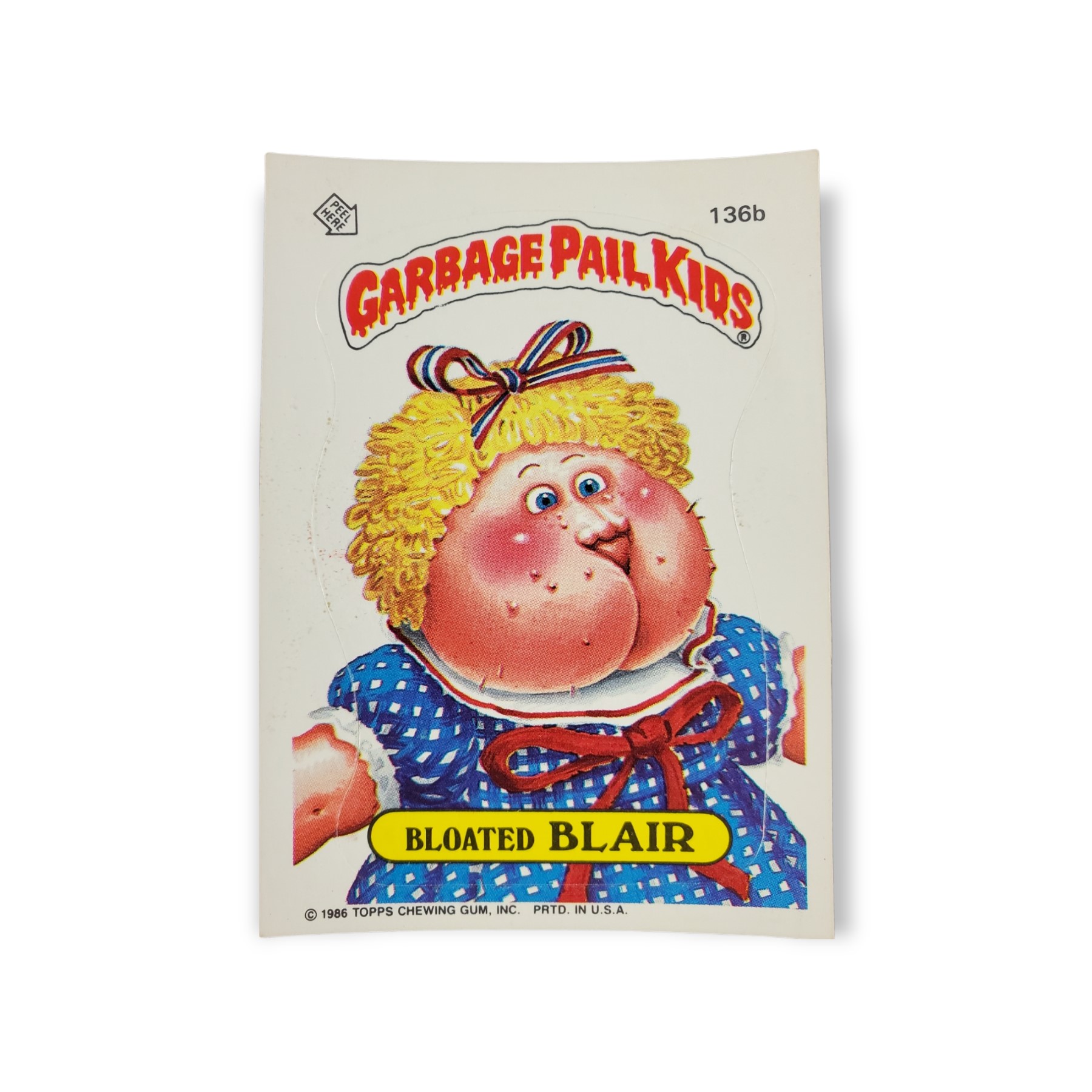 1986 Topps Garbage Pail Kids Original Series 4 Trading Card #136b Bloated Blair Sticker – The cards condition should be considered lightly handled or better. The card may have any of the following: slight off coloring, a nicked corner, corners with minor fraying, off centering, or a minor print imperfection so please carefully review all available images.