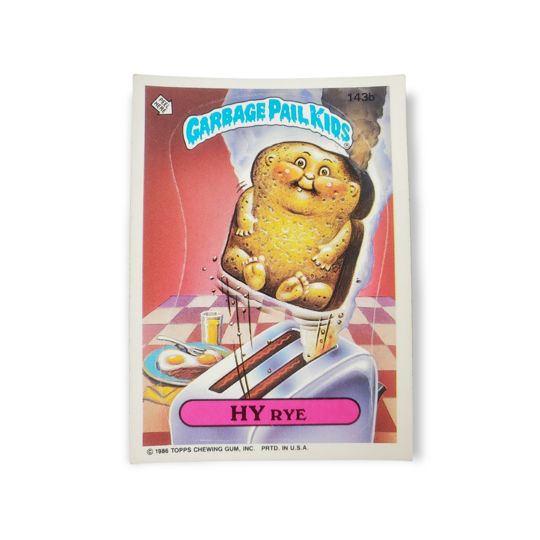 1986 Topps Garbage Pail Kids Original Series 4 Trading Card #143b Hy Rye Sticker – The cards condition should be considered lightly to moderately used or handled. The card may have any of the following: little to no creasing, light scratches, slight off coloring, lightly worn corners, off centering, or otherwise noted imperfections so please carefully review all available images.