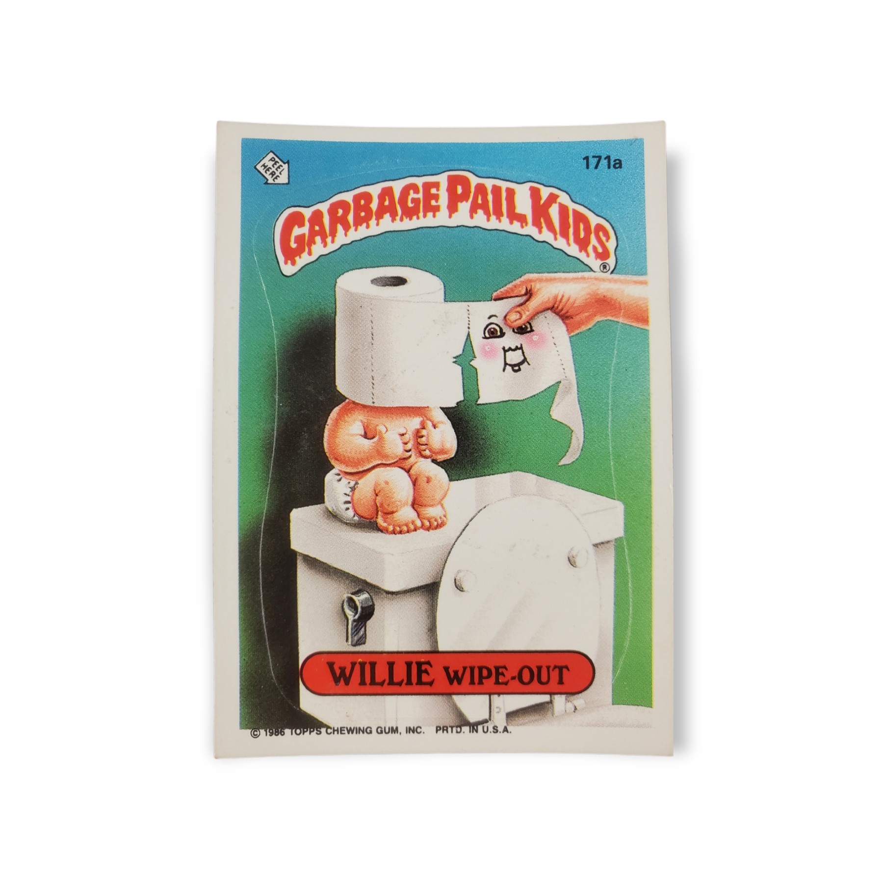 1986 Topps Garbage Pail Kids Original Series 5 Trading Card #171a Willie Wipe-Out Sticker – The cards condition should be considered lightly to moderately used or handled. The card may have any of the following: little to no creasing, light scratches, slight off coloring, lightly worn corners, off centering, or otherwise noted imperfections so please carefully review all available images.