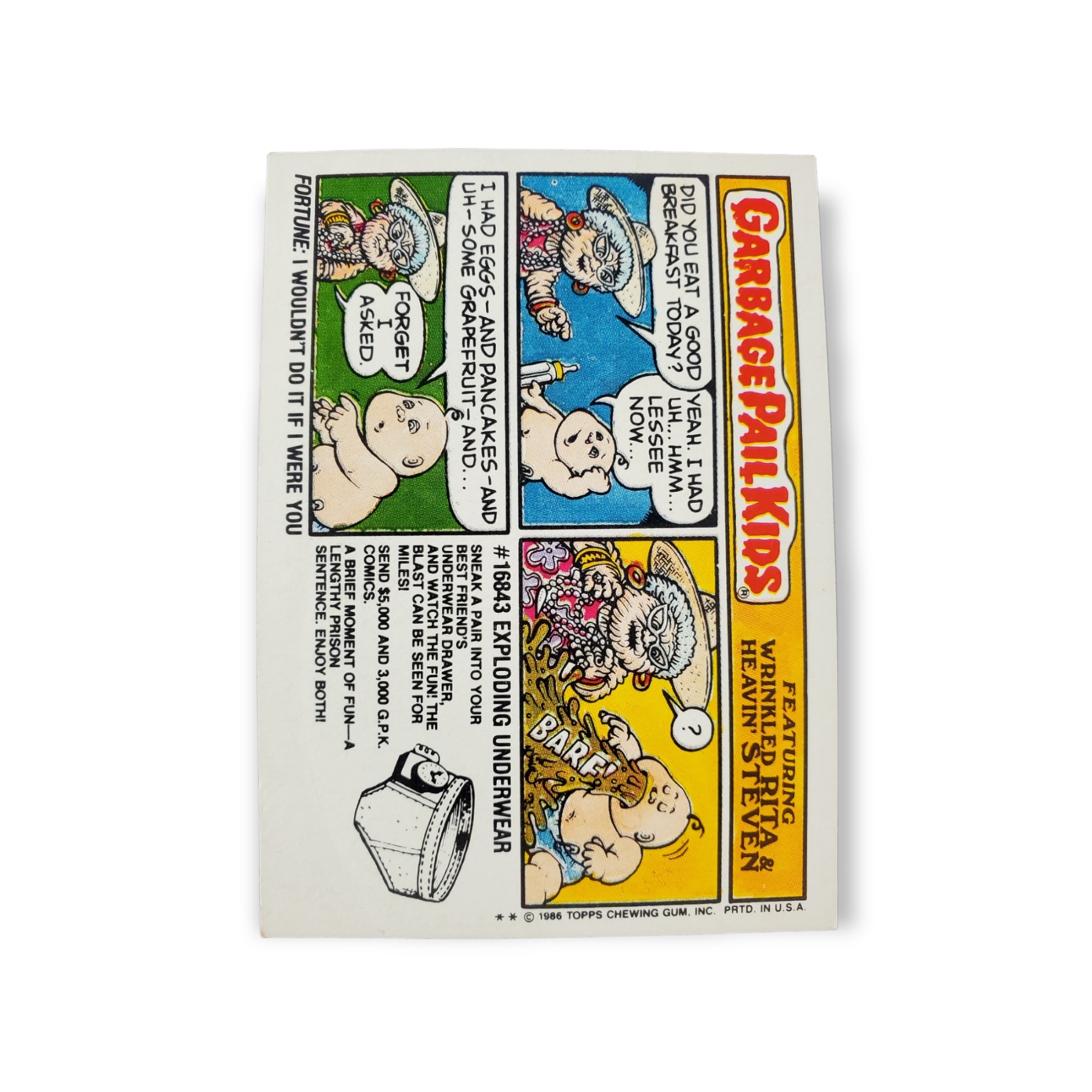 1986 Topps Garbage Pail Kids Original Series 6 Trading Card #218b Bridget Digit Sticker – The cards condition should be considered lightly handled or better. The card may have any of the following: slight off coloring, a nicked corner, corners with minor fraying, off centering, or a minor print imperfection so please carefully review all available images.