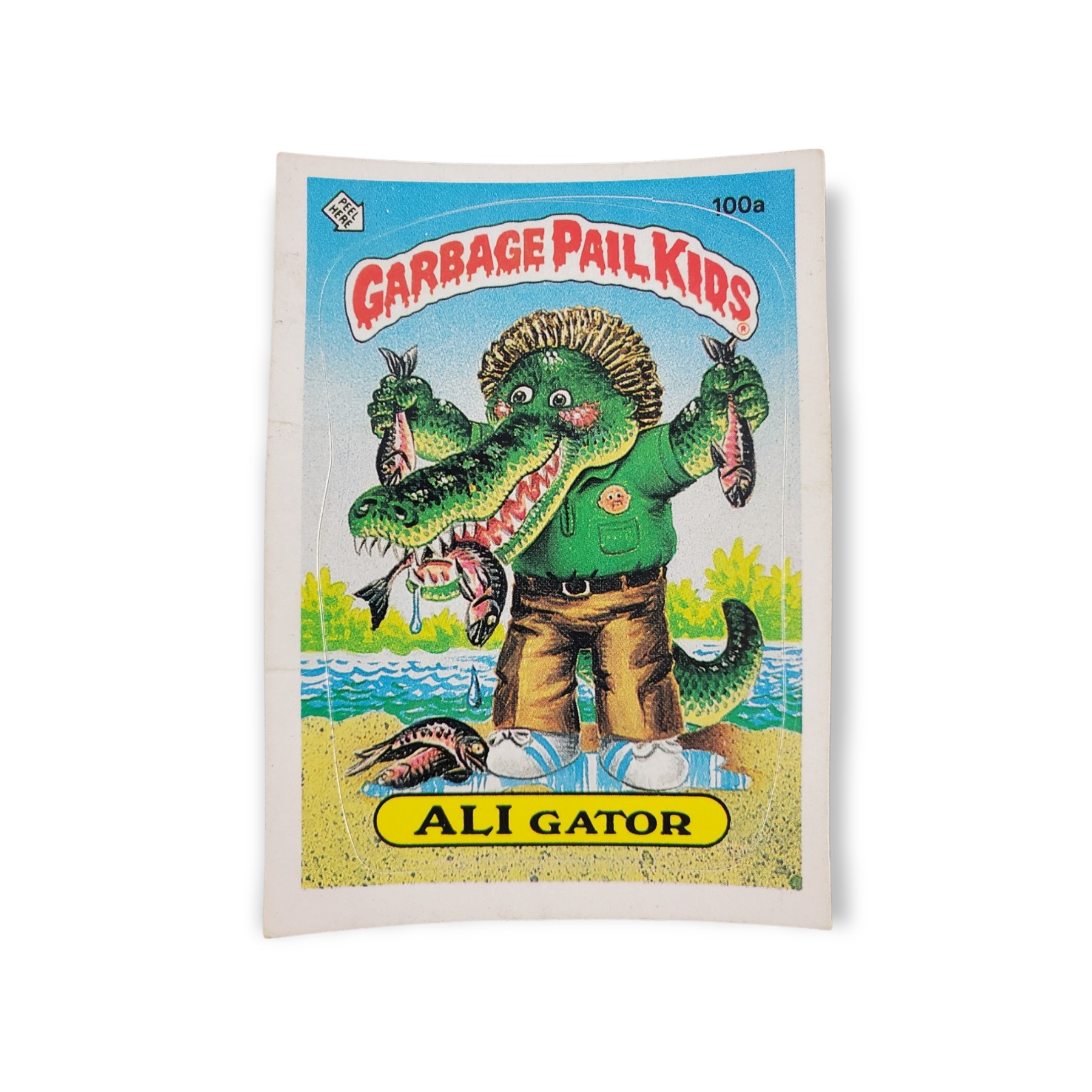 1986 Topps Garbage Pail Kids Original Series 3 Trading Card #100a Ali Gator Sticker – Variation: One asterisk; Error: Double Die Cut. The cards condition should be considered lightly to moderately used or handled. The card may have any of the following: little to no creasing, light scratches, slight off coloring, lightly worn corners, off centering, or otherwise noted imperfections so please carefully review all available images.