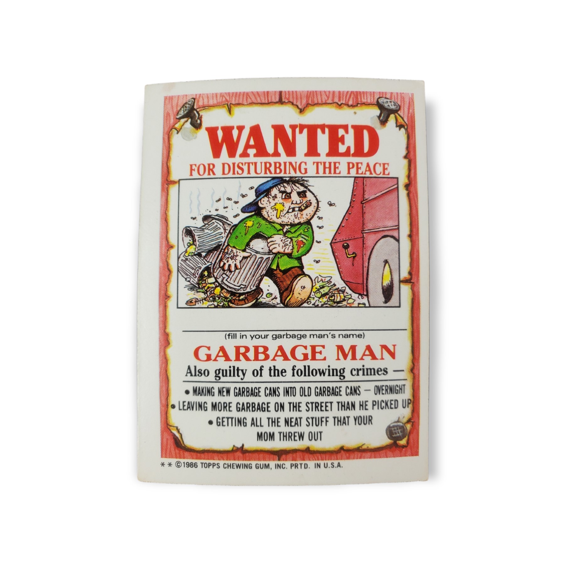 1986 Topps Garbage Pail Kids Original Series 3 Trading Card #104a Silent Sandy Sticker – Variation: Two asterisks. The cards condition should be considered lightly to moderately used or handled. The card may have any of the following: little to no creasing, light scratches, slight off coloring, lightly worn corners, off centering, or otherwise noted imperfections so please carefully review all available images.