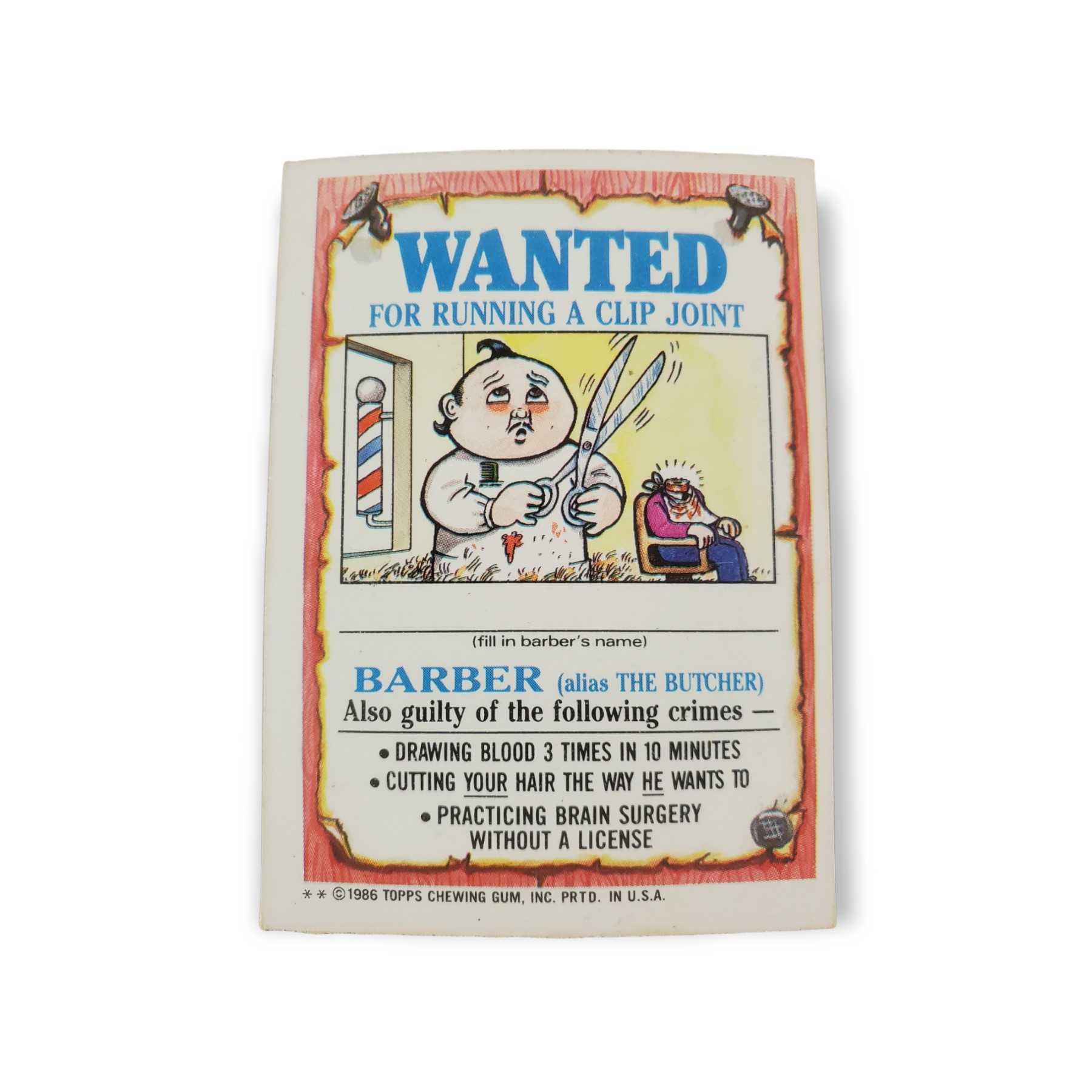 Home Shop Non-Sports/TCG Cards Humor Cards 1986 Topps Garbage Pail Kids Series 3 #113a Alice Island Barber ** Variation