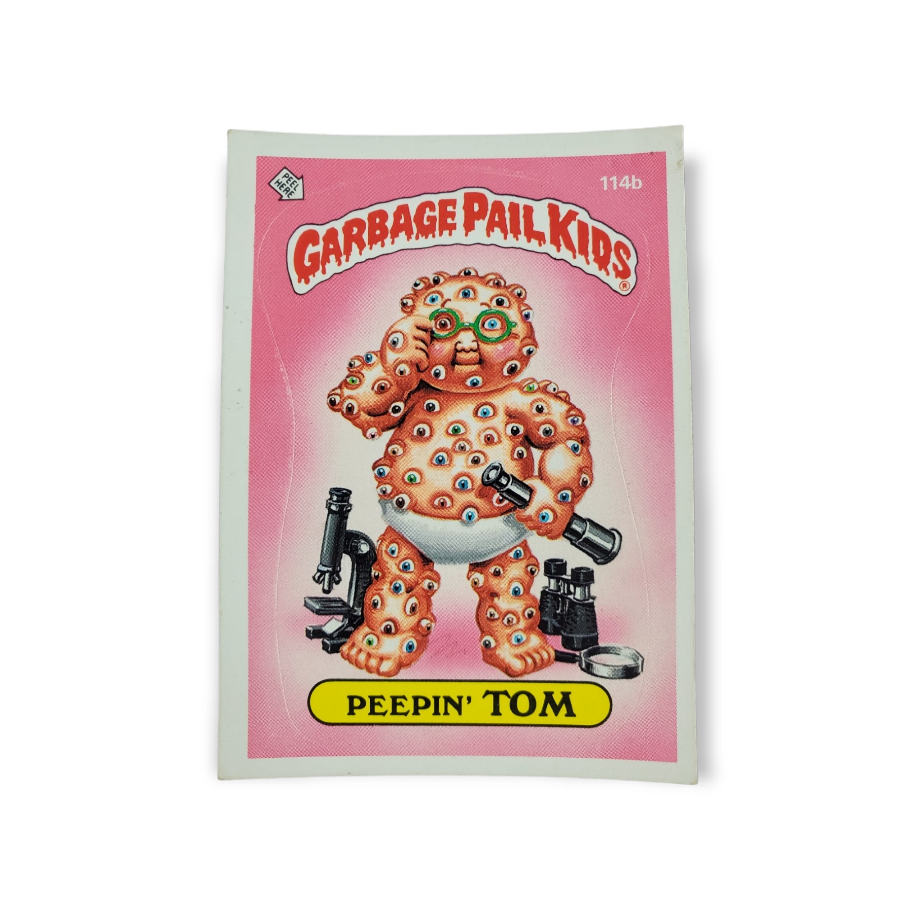 1986 Topps Garbage Pail Kids Original Series 3 Trading Card #114b Peepin’ Tom Sticker – Variation: No copyright, Two asterisks. The cards condition should be considered lightly to moderately used or handled. The card may have any of the following: little to no creasing, light scratches, slight off coloring, lightly worn corners, off centering, or otherwise noted imperfections so please carefully review all available images.