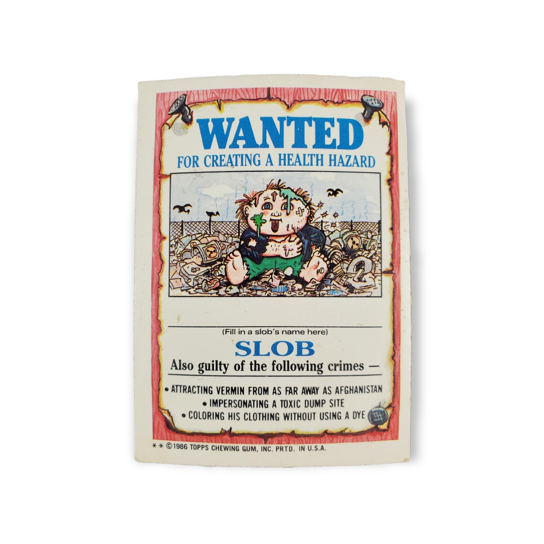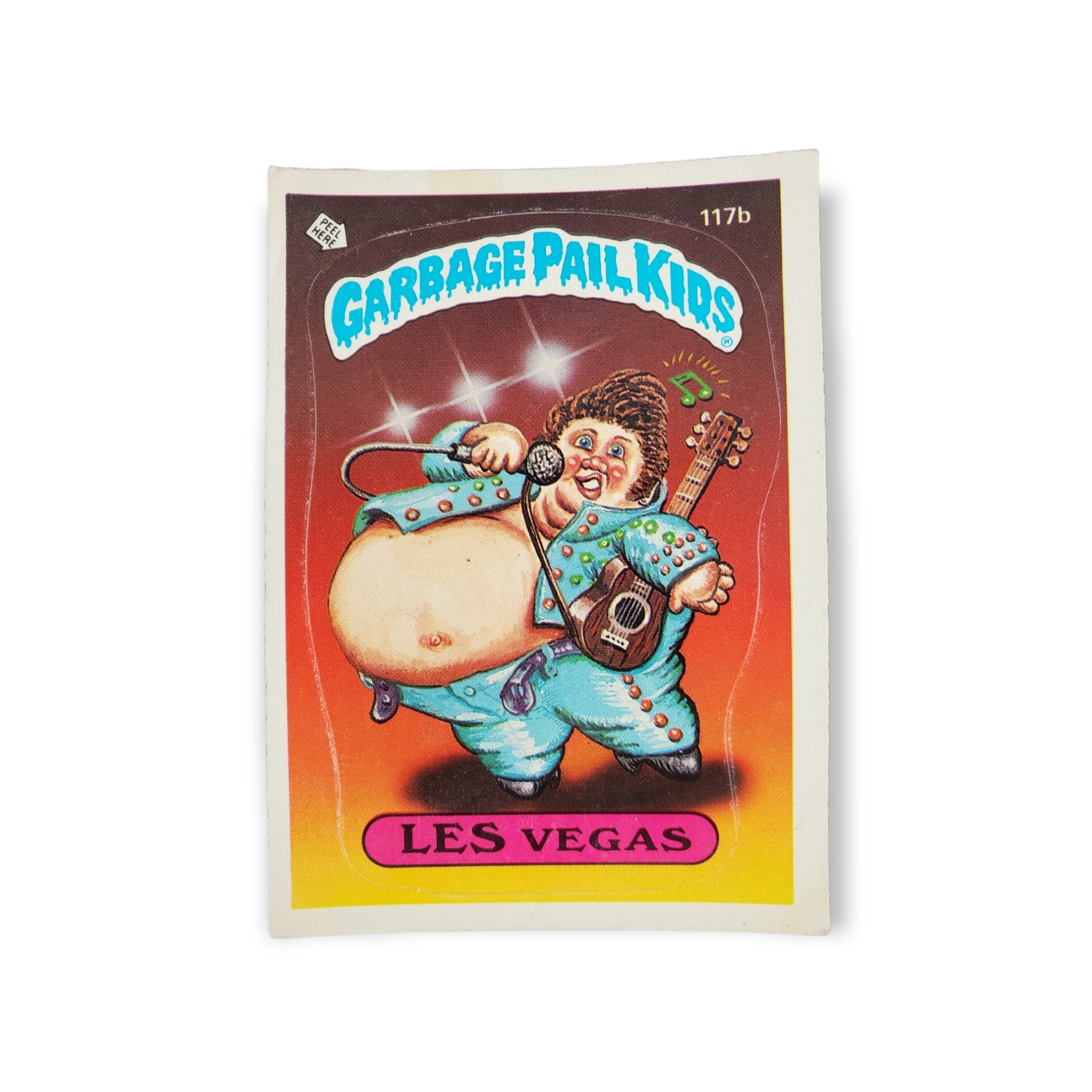 1986 Topps Garbage Pail Kids Original Series 3 Trading Card #117b Les Vegas Sticker – Variation: Two asterisks. The cards condition should be considered moderately to heavily used or handled. The card may have any of the following: minor creases, stains, scratches, rounded corners, off centering, a miscut, misprint, or otherwise noted imperfection so please carefully review all available images.