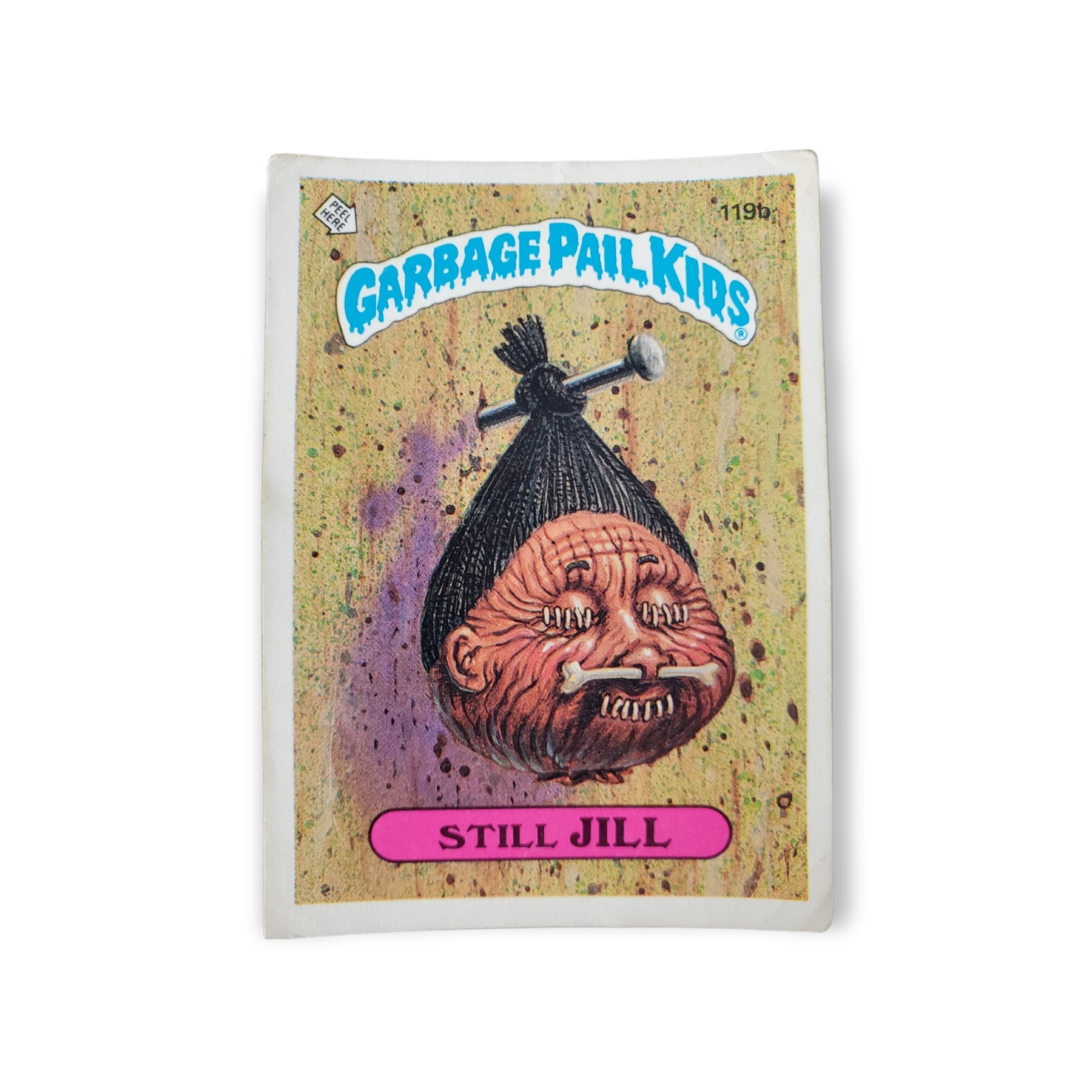 1986 Topps Garbage Pail Kids Original Series 3 Trading Card #119b Still Jill Sticker – Variation: One asterisk. The cards condition should be considered moderately to heavily used or handled. The card may have any of the following: minor creases, stains, scratches, rounded corners, off centering, a miscut, misprint, or otherwise noted imperfection so please carefully review all available images.