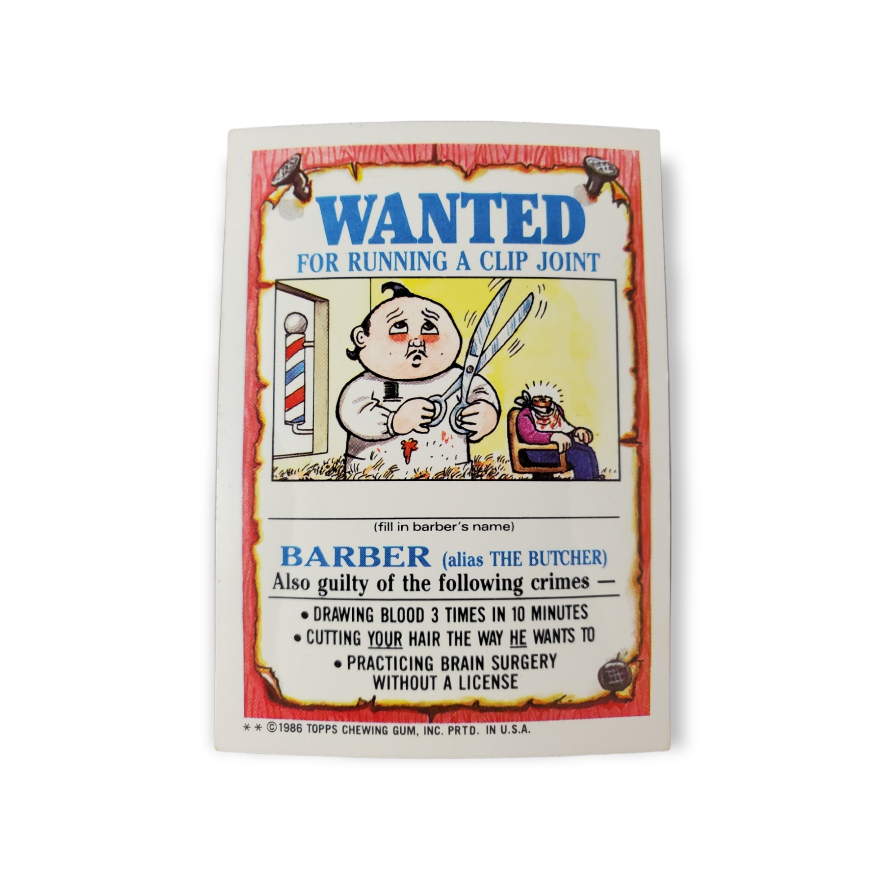 Home Shop Non-Sports/TCG Cards Humor Cards 1986 Topps Garbage Pail Kids Series 3 #84b Rod Wad Sticker Barber ** Variation